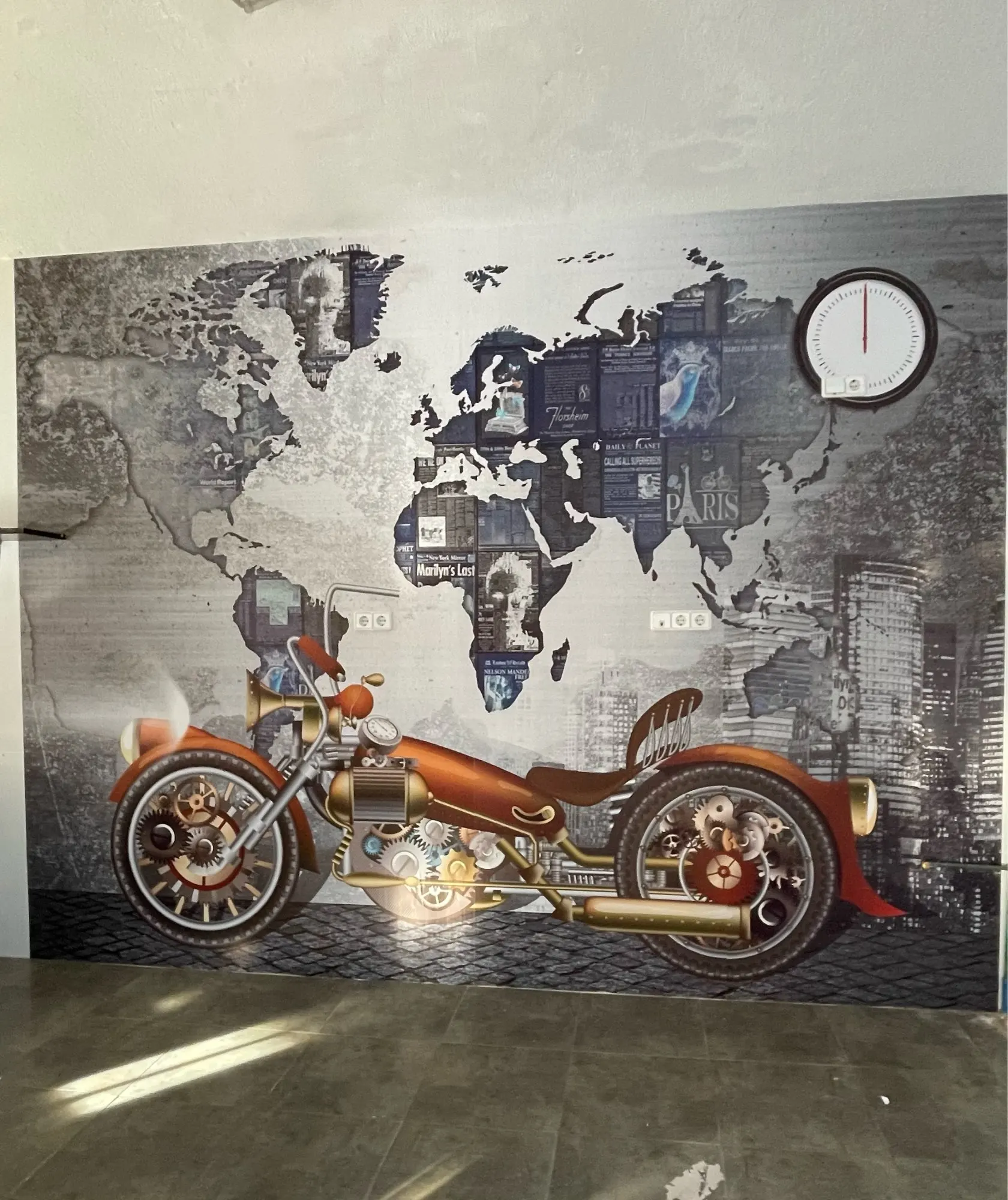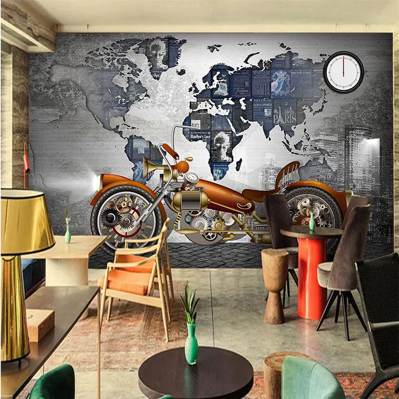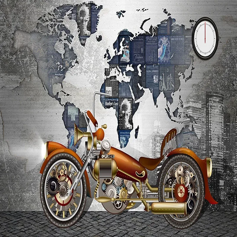 Самоклеящиеся водонепроницаемые обои на заказ, 3D Ретро фотообои с изображением мотоциклетной карты, фоновые настенные наклейки с френсками для ресторана, кафе