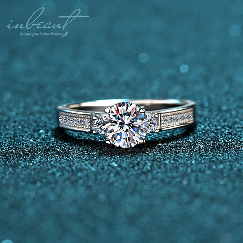 Круглое Сверкающее кольцо inbeaut с муассанитом, кольцо из 925 проб...