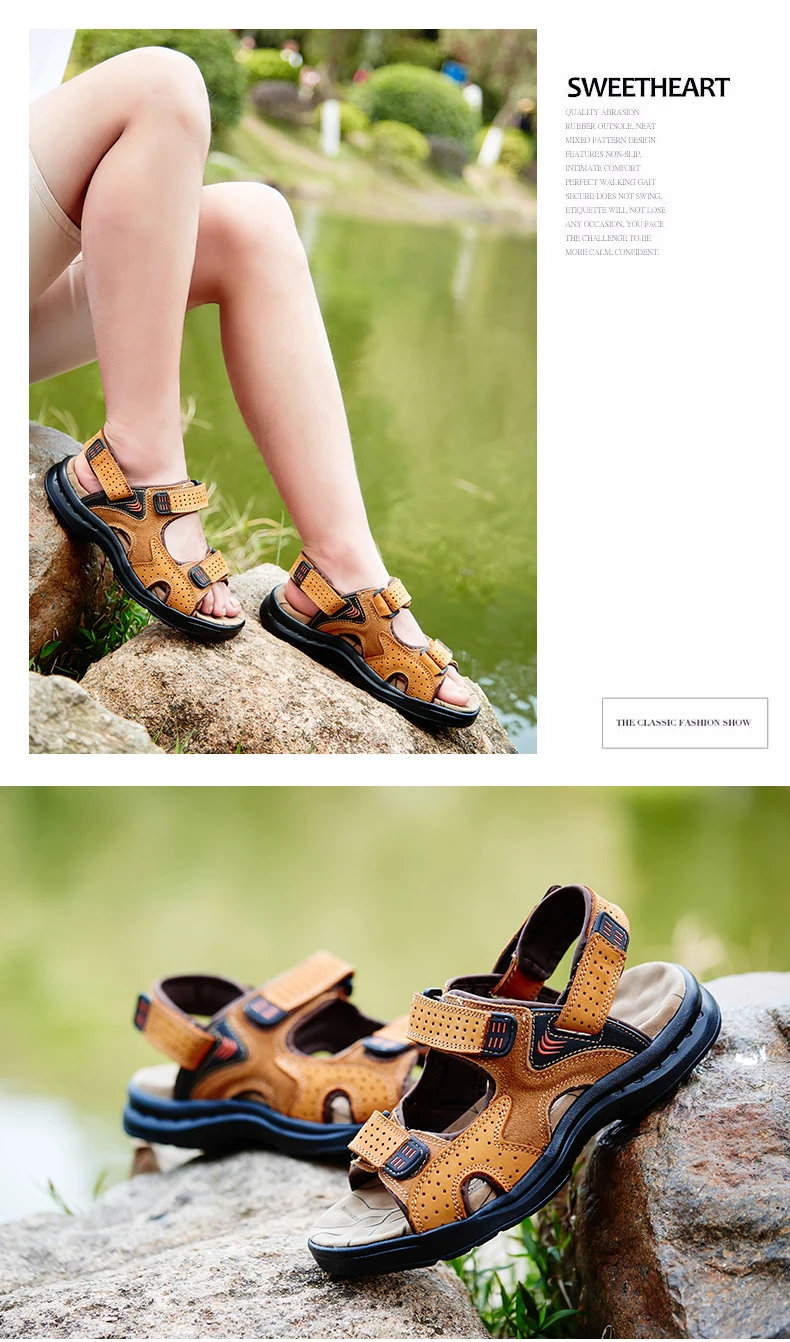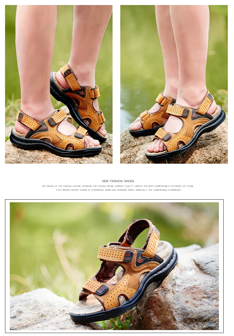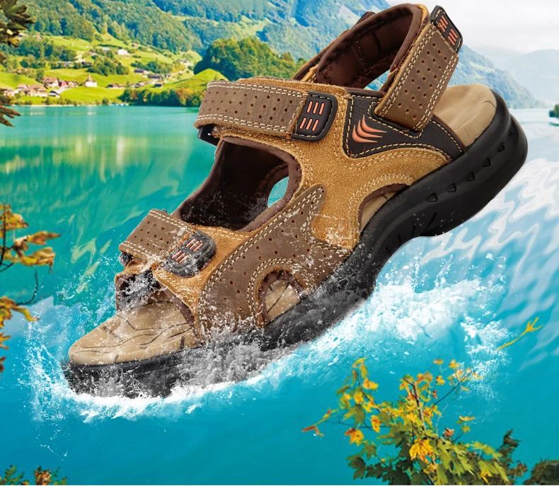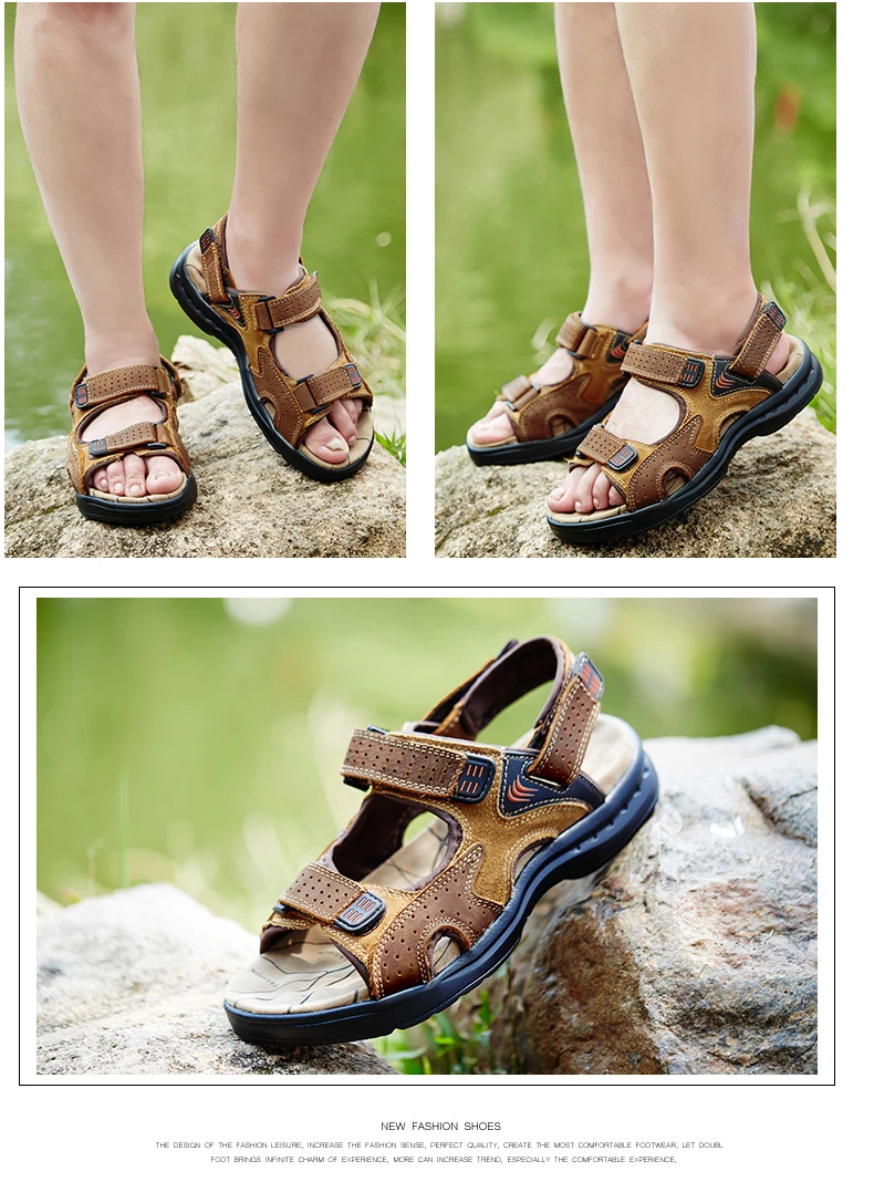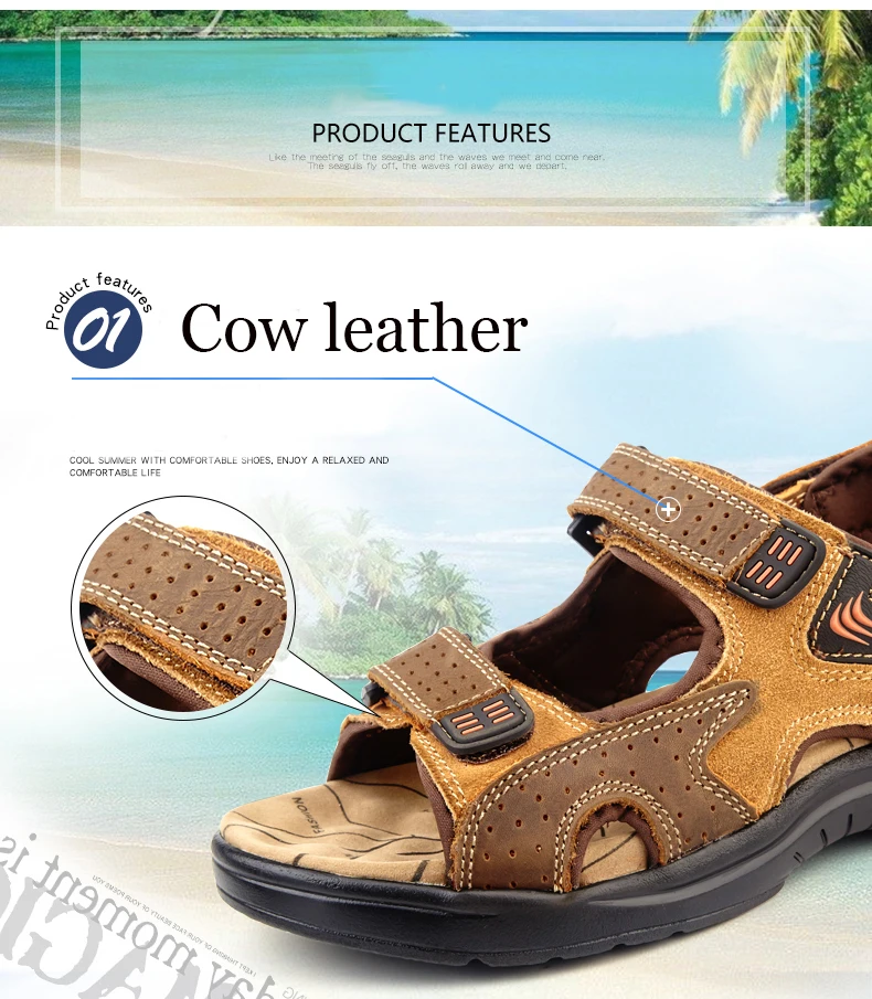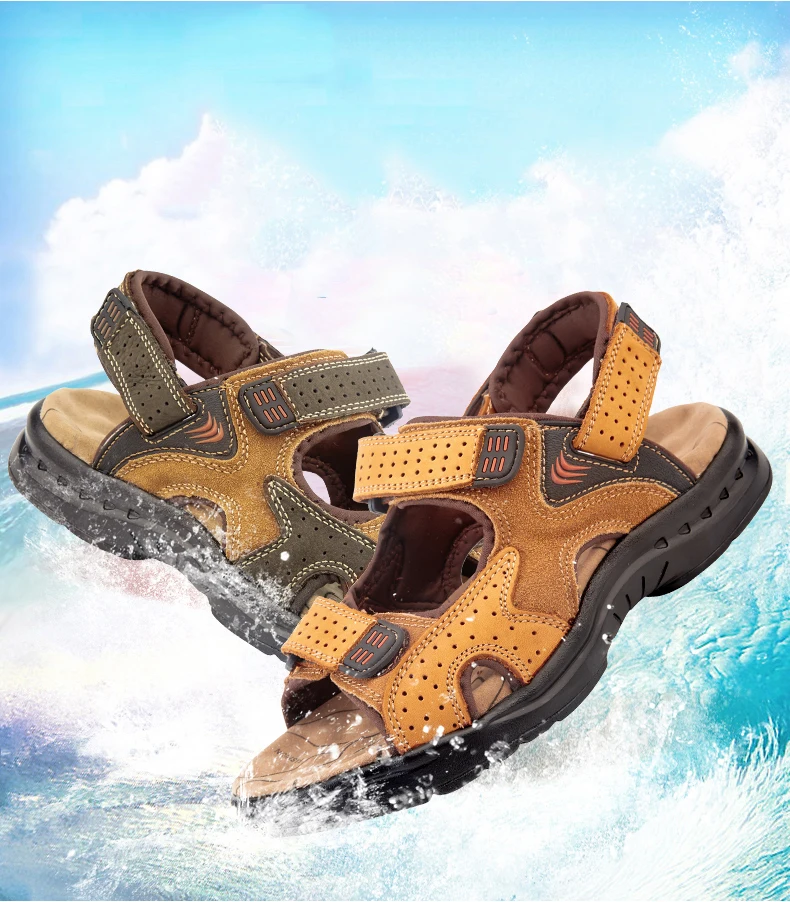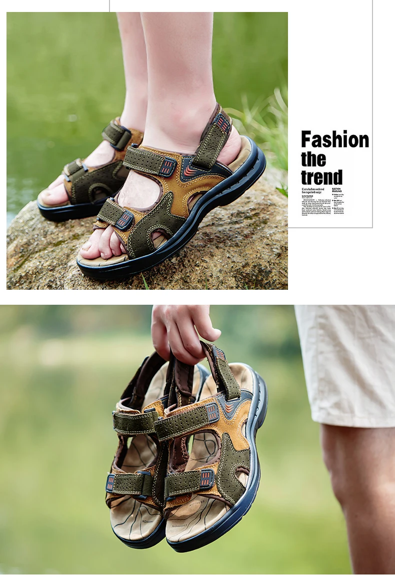 Мужские сандалии из натуральной кожи, летние мужские пляжные сандалии, мужские Модные уличные повседневные кроссовки