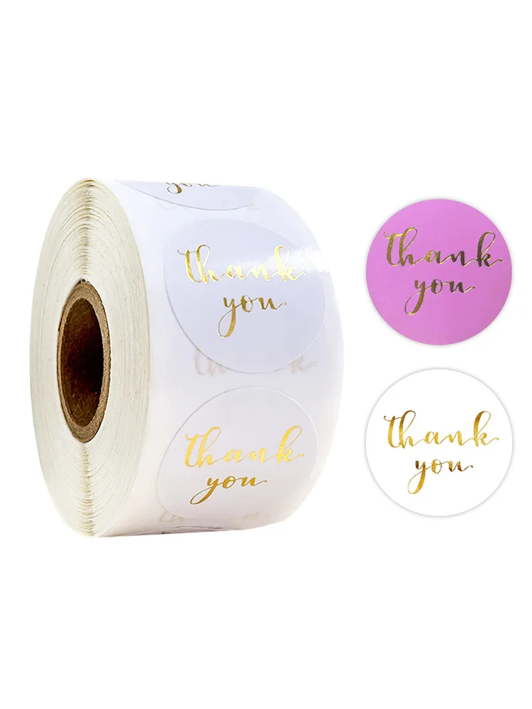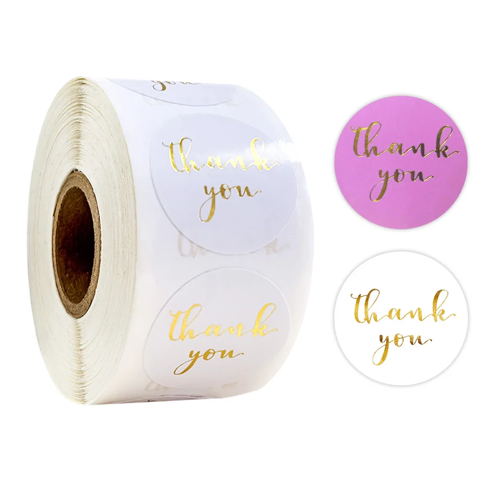 500 шт.рулон, благодарим вас, наклейки, этикетки для печати с милыми круглыми золотыми фольгами, розовые или белые наклейки, наклейки для скрапбукинга, Канцтовары