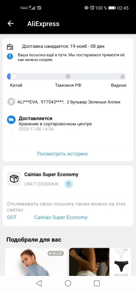 Страна: RU Color: ZZFG5 Доставка: Cainiao Super Economy 25.11.2020