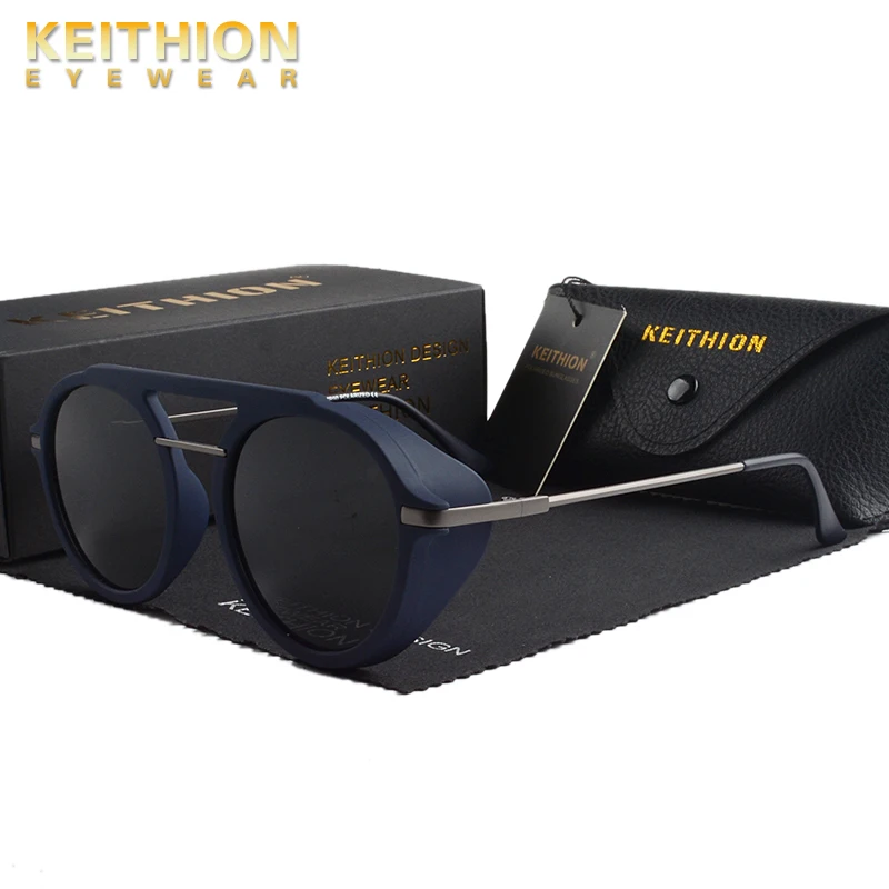 Мужские солнцезащитные очки KEITHION, винтажные круглые поляризационные очки в стиле стимпанк, TR90, с боковой защитой, брендовые дизайнерские солнцезащитные очки UV400