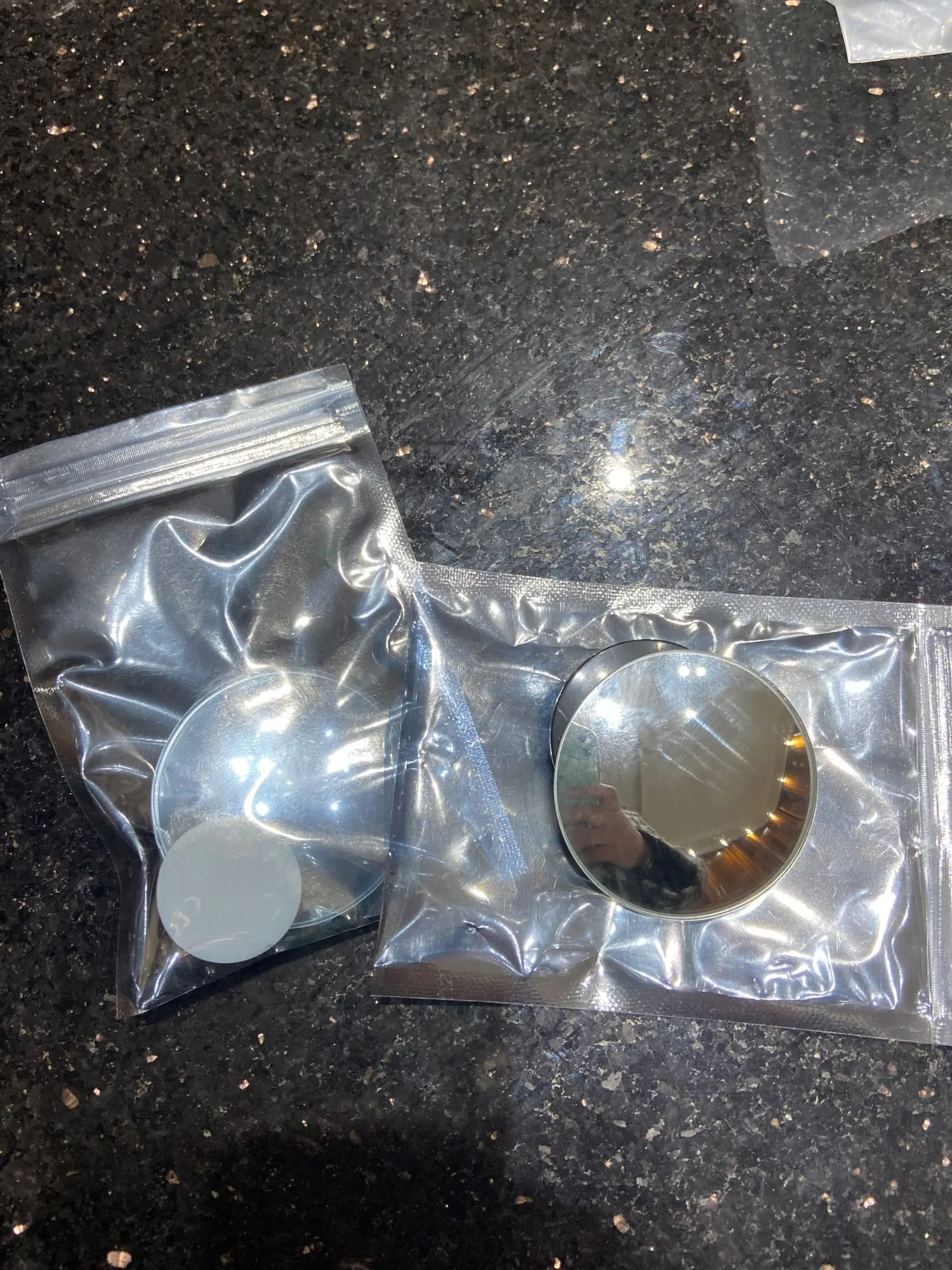 Товар пришёл к концу срока доставки, но пришёл!)) качеством доволен, материал зеркала- стекло