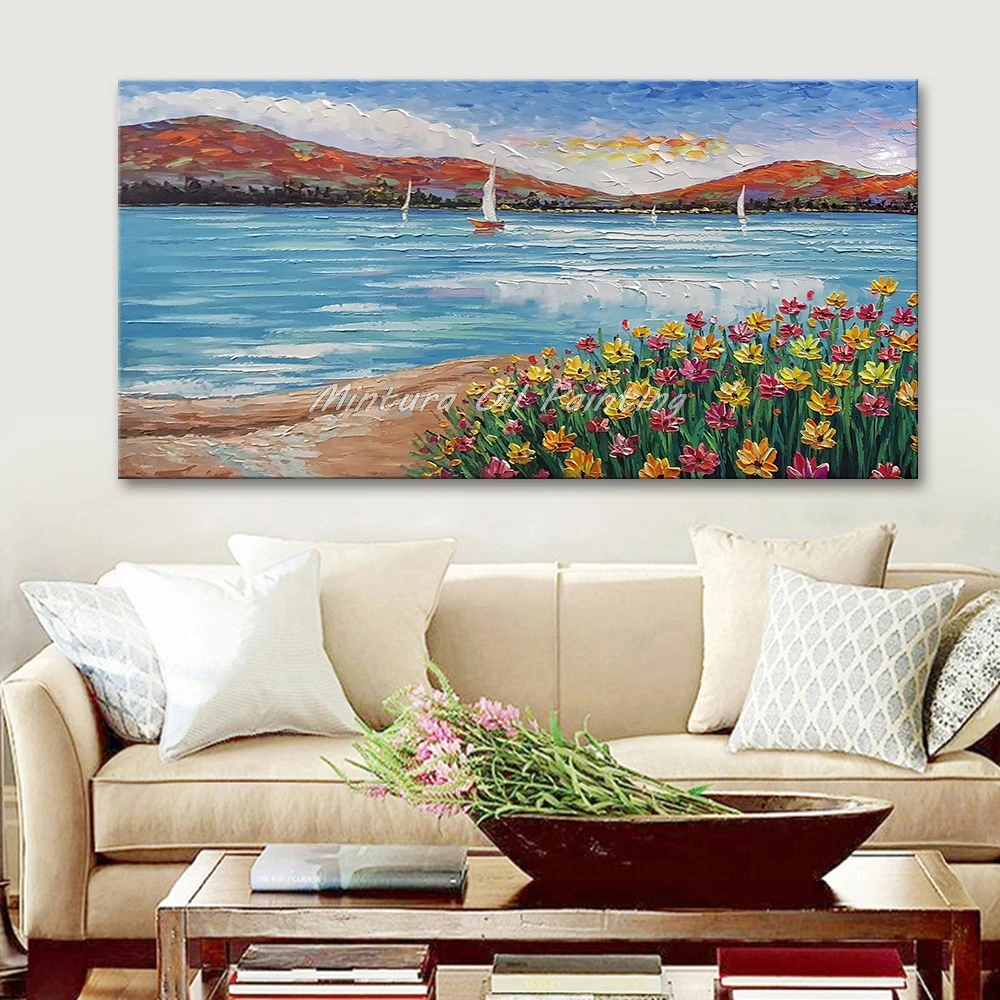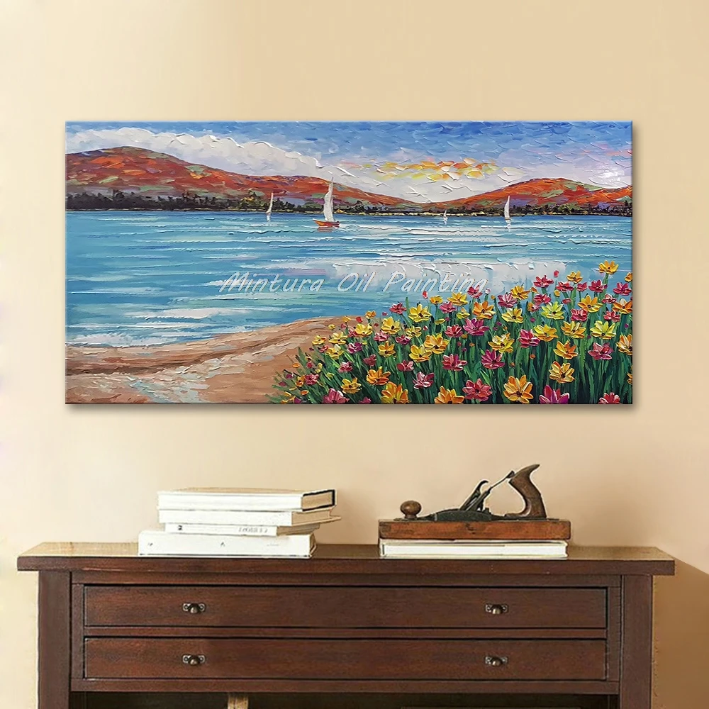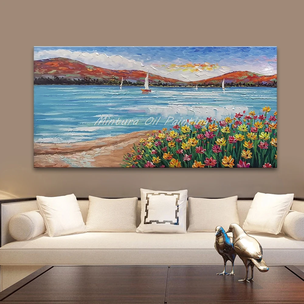 Картина на стену Mintura для гостиной, картина маслом на канве, ручная роспись, абстрактный пейзаж, нож, картина, декор для отеля, без рамки