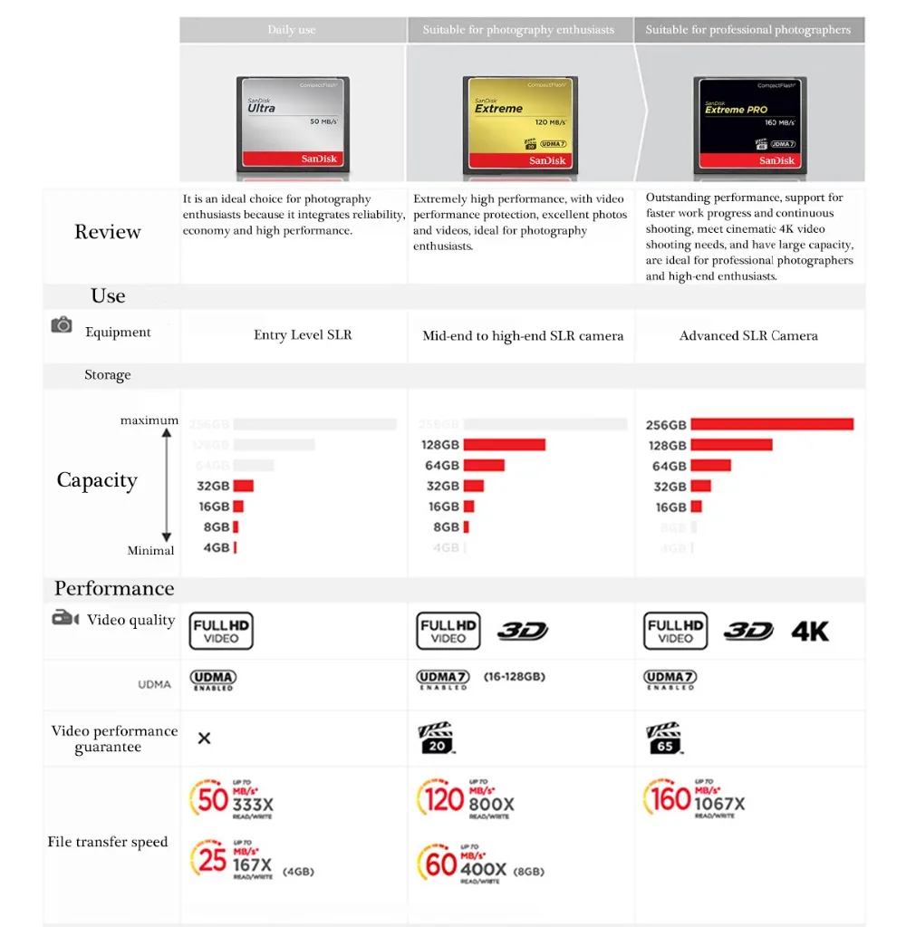 Карта памяти SanDisk CF 16 ГБ, 32 ГБ, 64 ГБ, 128 ГБ, компактная выс...