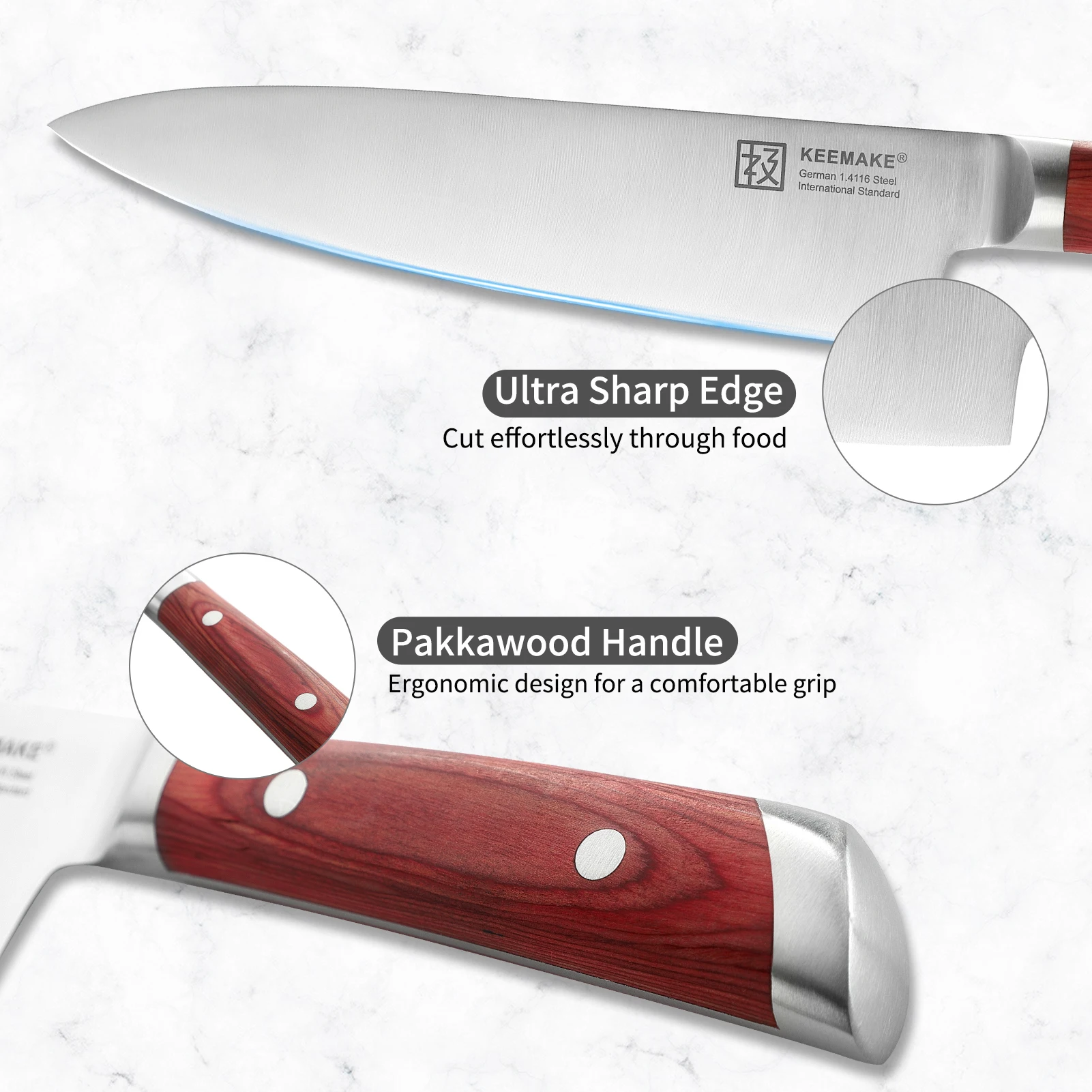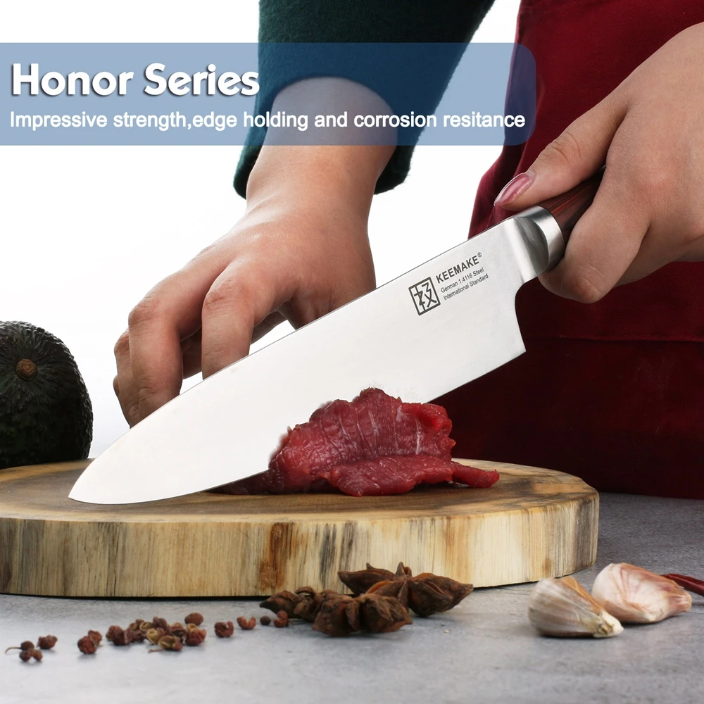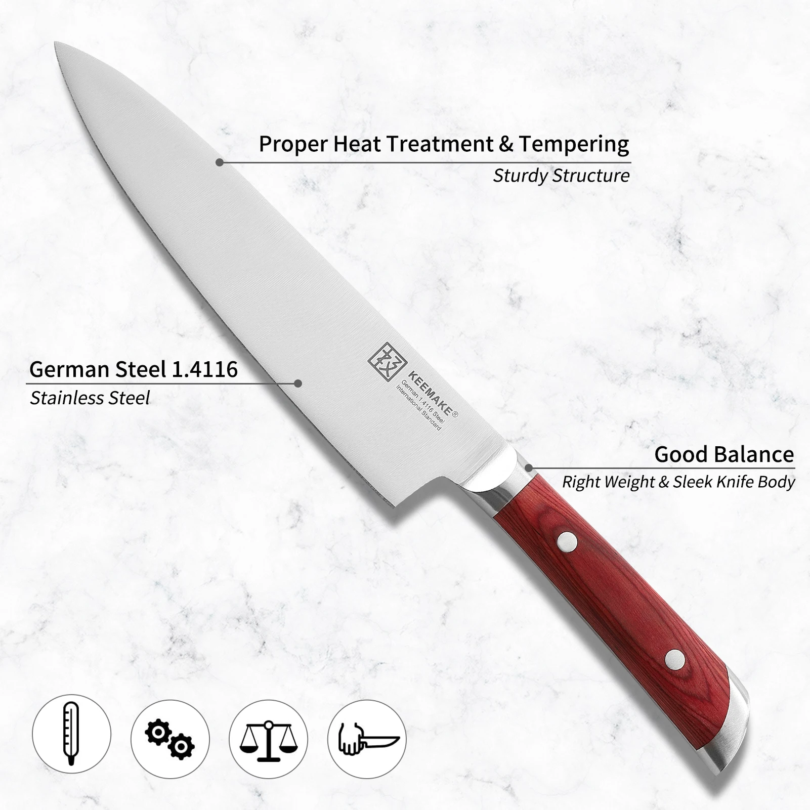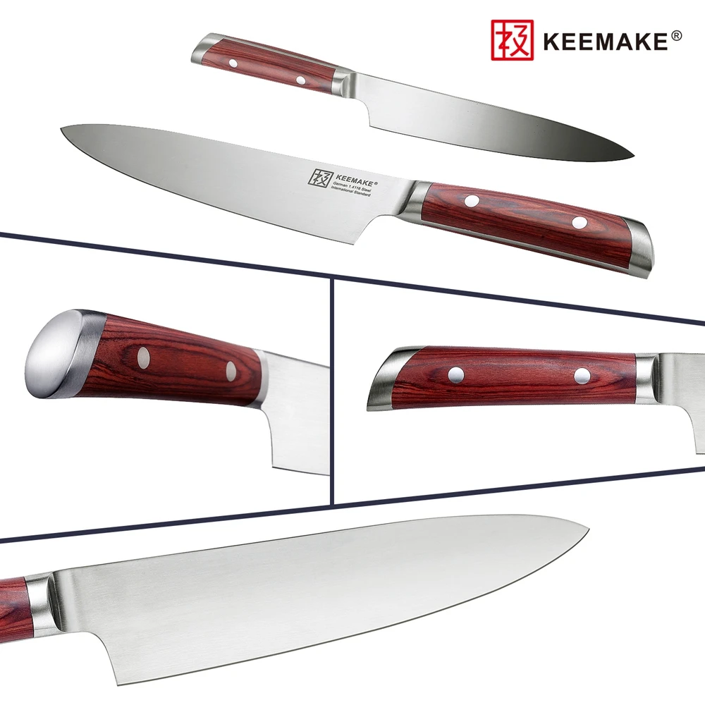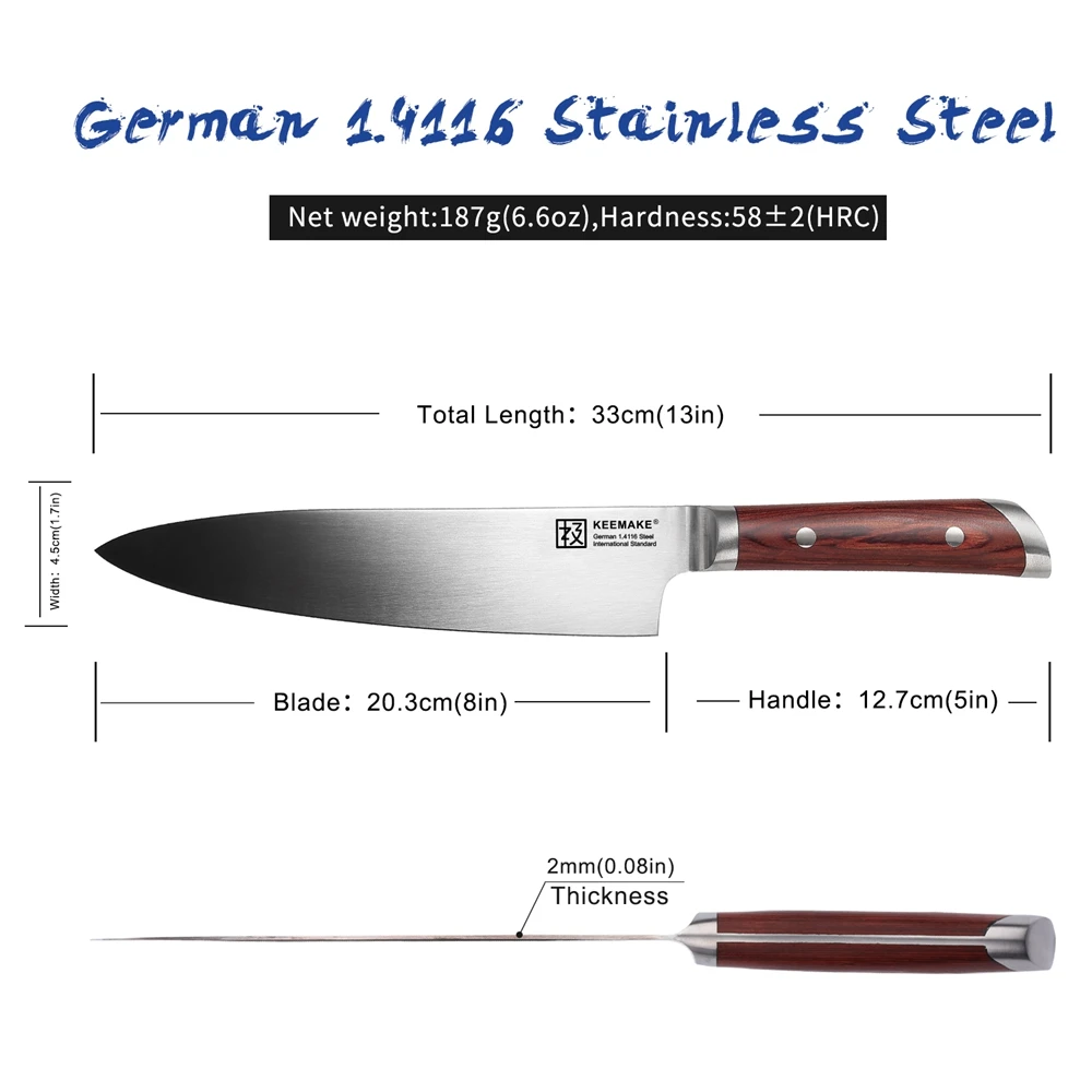 KEEMAKE 8 "нож шеф-повара немецкий 1,4116 стали лезвие кухонные ножи острое лезвие 58HRC сильная твердость цвет деревянная ручка резак инструменты