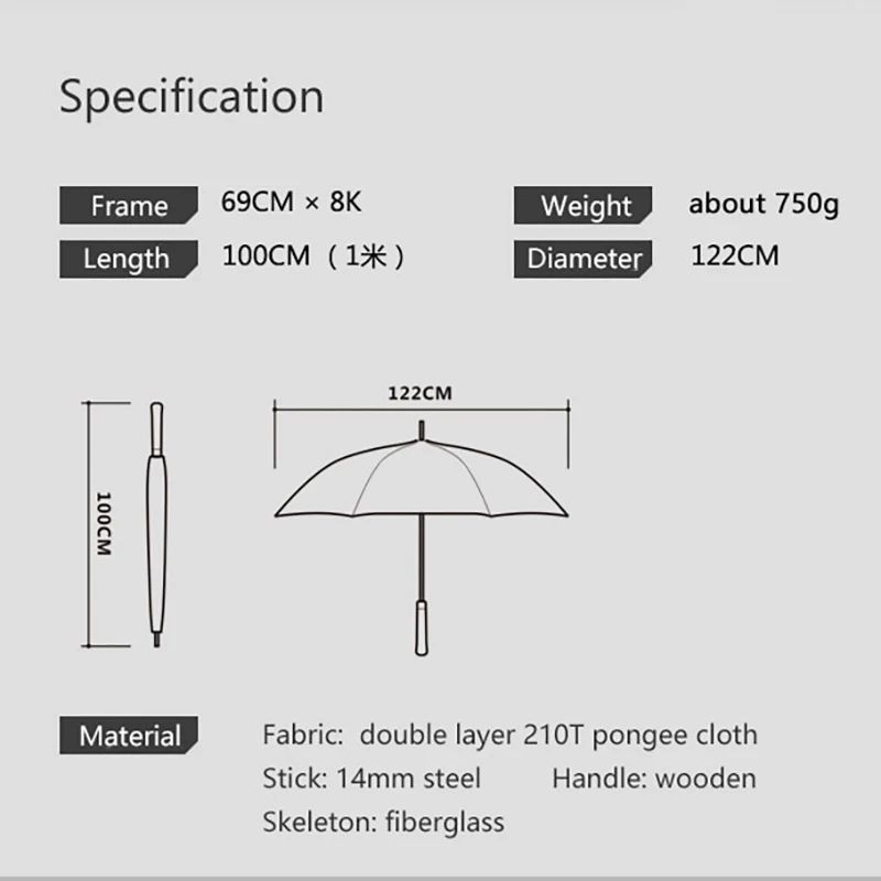 Большой зонт Olycat от дождя, женский, автоматический зонт с деревянной ручкой, 8 ребер, двухслойный, для игры в гольф, в деловом стиле, ветрозащитный