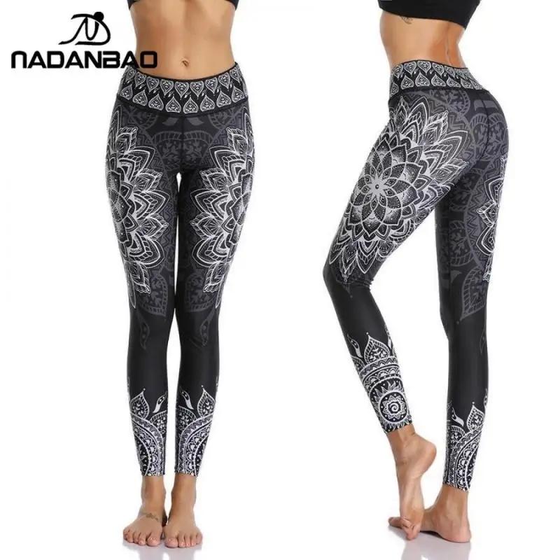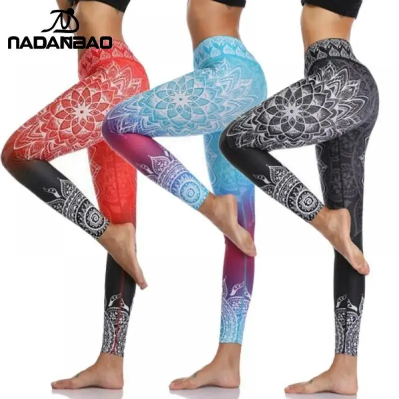 Новинка 2022, леггинсы NADANBAO с высокой талией и мандалой, брюки для тренировок с градиентным цветом, леггинсы для фитнеса с чакрами, женские эластичные брюки, плюс icon star icon star icon star icon star icon star