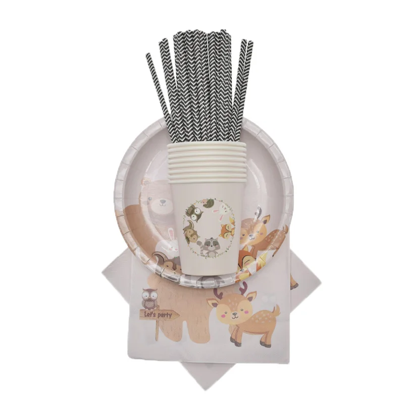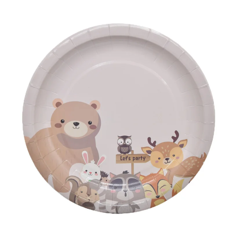 Набор одноразовой посуды для детского дня рождения с изображением диких животных
