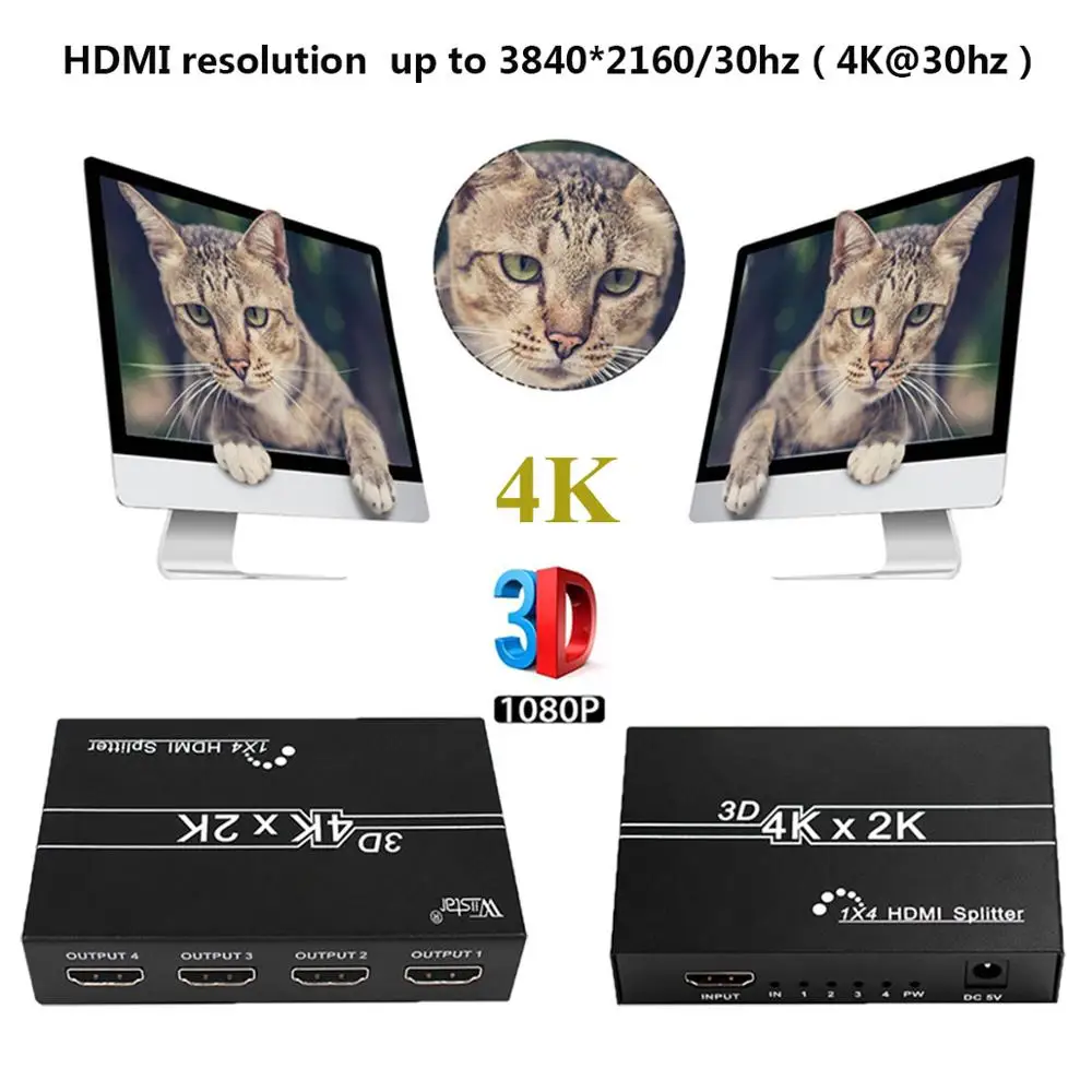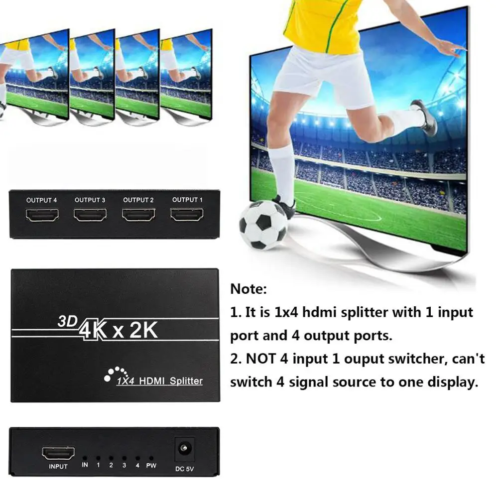 4K HDMI сплиттер 1in4, 1x4 HDMI1.4 вольт сплиттер с питанием (4k при 30 Гц полный UHD 1080p 3D) с адаптером питания от сети переменного тока