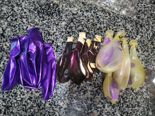 Пришло 15 штук , из них один прям разодран. Пока не надували. Но цвет у темных шаров, не совсем соответствует.