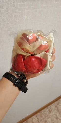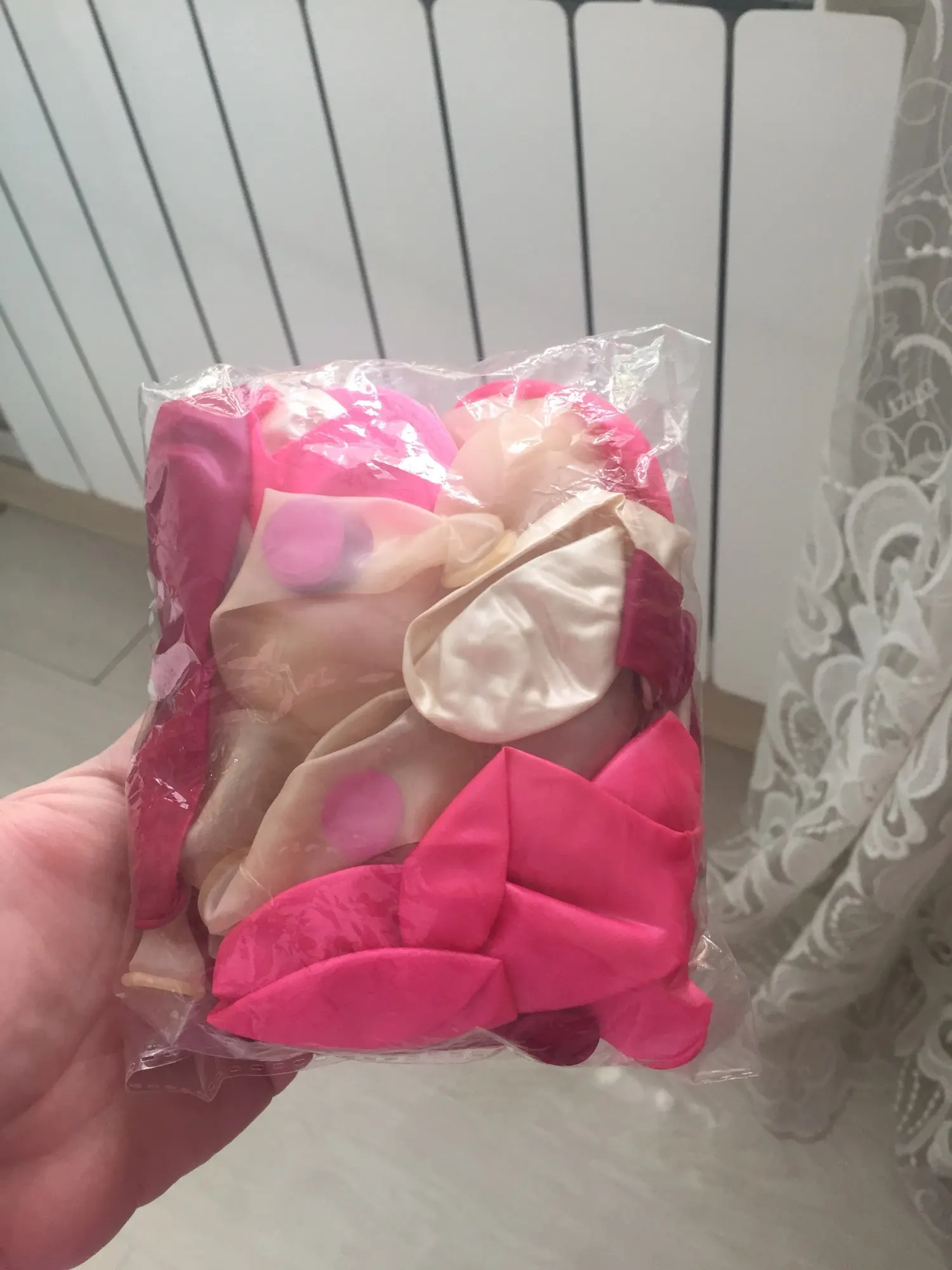 В комплекте 15 шаров. Из них 10 цветных и 5 якобы прозрачных с конфети внутри. С цветными все отлично! Прозрачные плохо надуваются, первый взорвался, остальные 4 страшно надувать. Ставлю 7 из 10 с натяжкой из-за быстрой доставки.