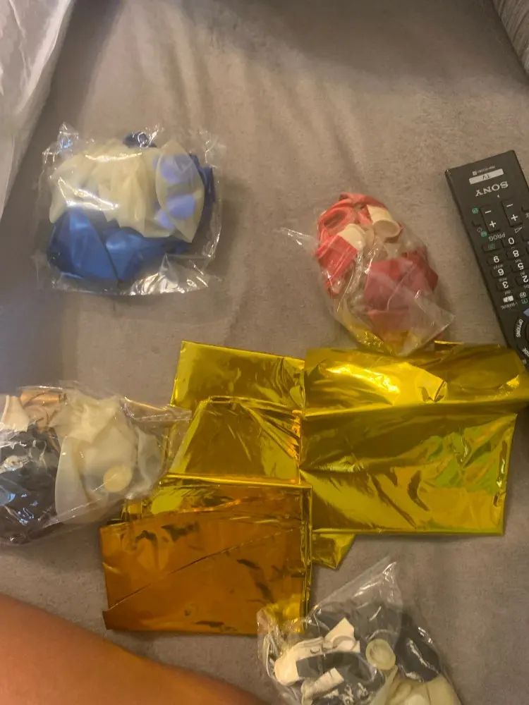 все хорошо. шарики с кофетти перевязаны резинкой, чтоб конфетти не высыпалось )