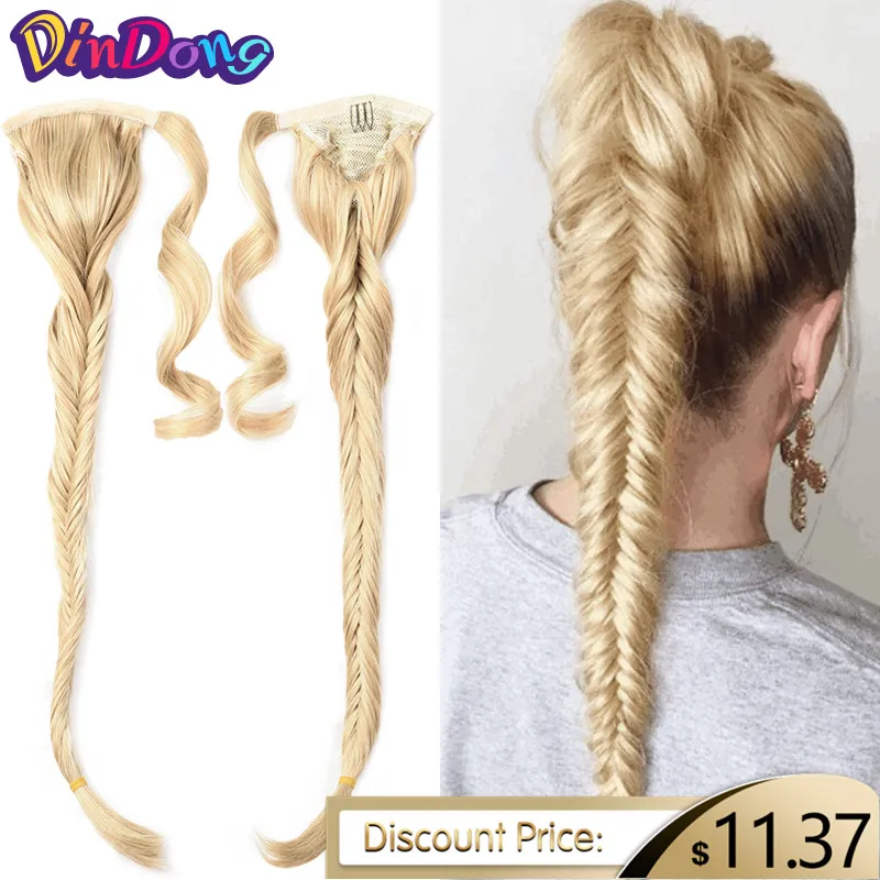 DinDong синтетические волосы для наращивания конского хвоста, 24 дюйма, косички рыбий хвост, заколка для косы для наращивания волос