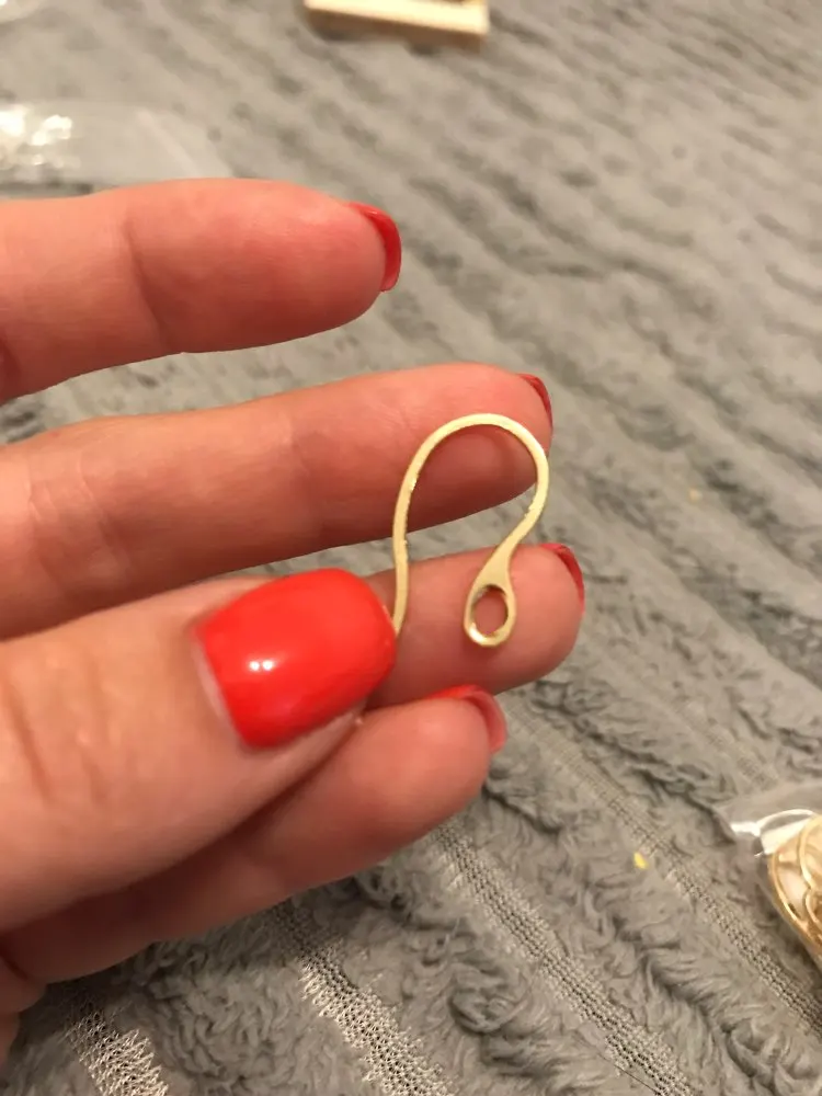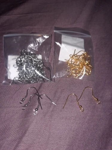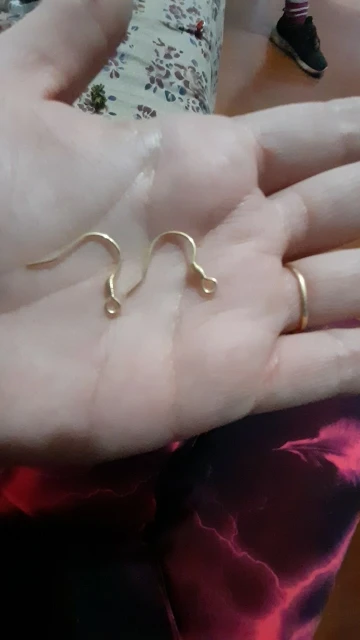 Отличные крючки для серег. Выглядят дороже, чем они стоят. Они ярко-золотого цвета. Отличное разнообразие размеров. Провод немного толстый, но хорошо помещается в отверстие для ушей. Выглядит хорошо. Хорошая цена и быстрая доставка. Закажем больше