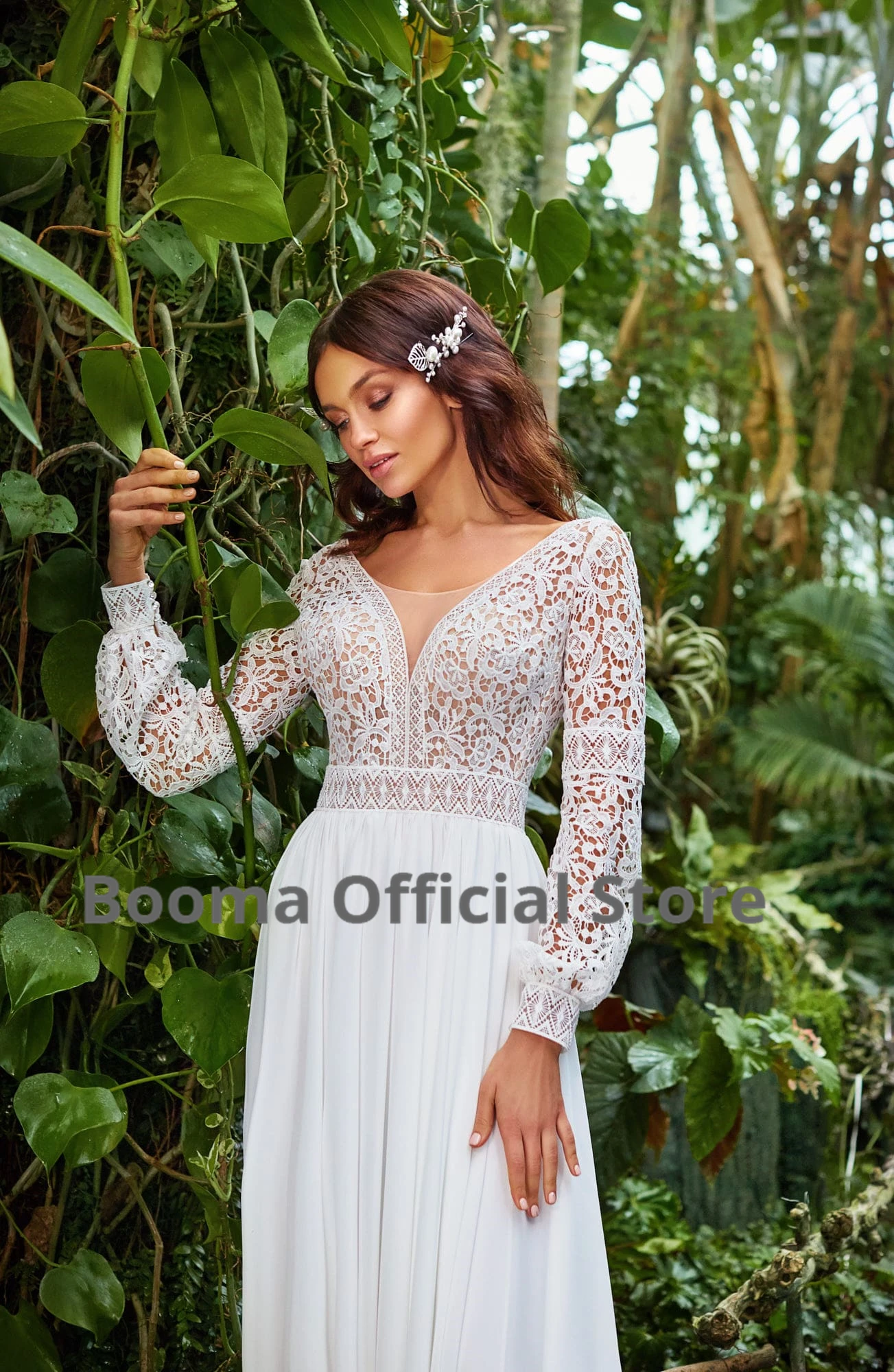 Свадебные платья в стиле бохо, шифоновое кружевное платье невесты с V-образным вырезом, открытой спиной, длинными рукавами, вырезами, винтажное, размера плюс