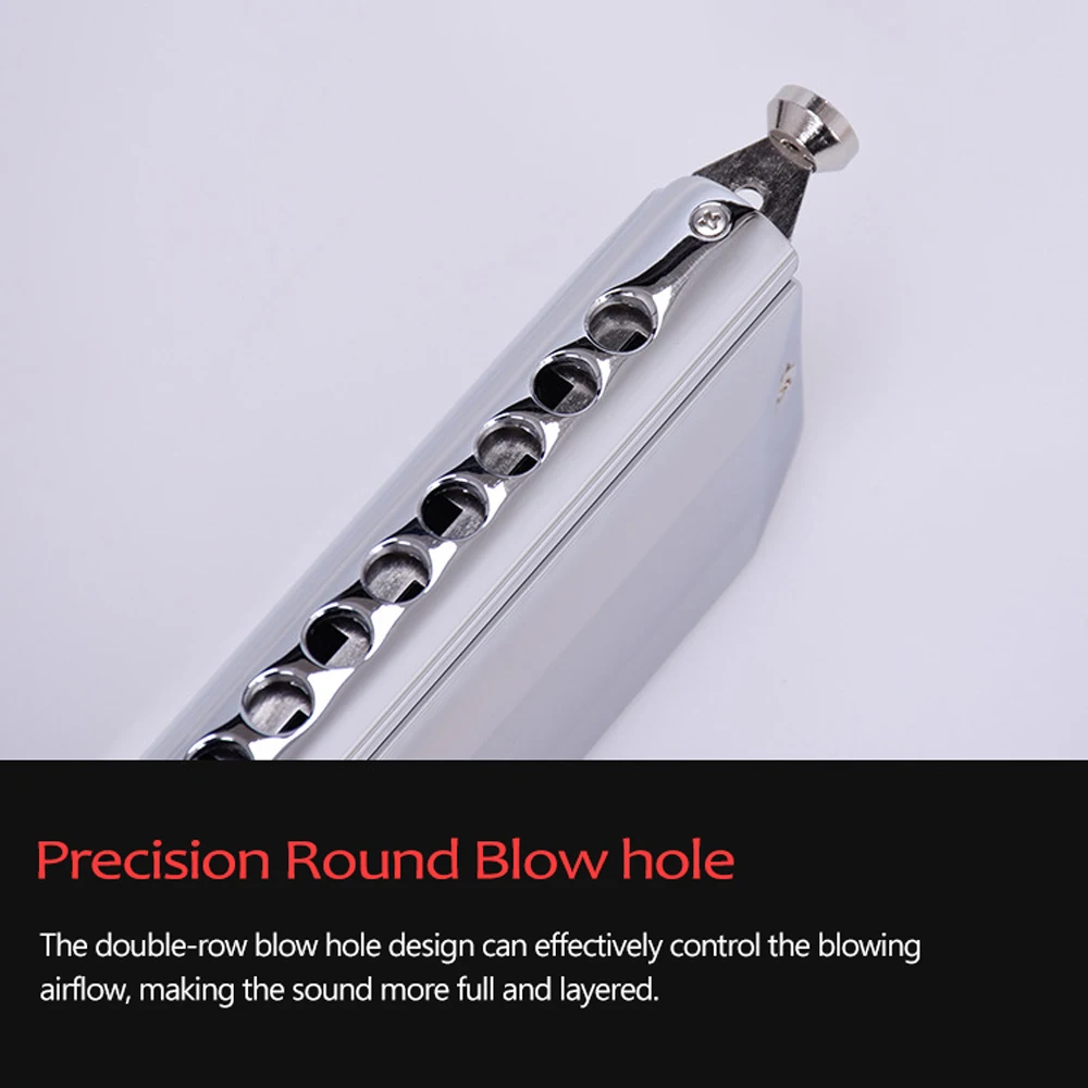 Особенности:Изготовлено из смолы ABS, каждая партия профессионально протестирована, безопасна и безопасна для кожи.Классическая структура тела и многоточечная поддержка тела реализует тонкую герметичность самой гармоники, достигая при этом красивого внешнего вида. Отличная резонансная производительность, и звук полный и круглый.Медная крышка покрыта серебром. Толстое покрытие эффективно предотвращает окисление и ржавчину, улучшает износостойкость и улучшает название красивого матового процесса.Двухрядная конструкция отверстия может эффективно контролировать поток воздуха, делая звук более полным и многослойным.C-тон-это широко используемый мобильный телефон tonality, а также подходит для обучения.