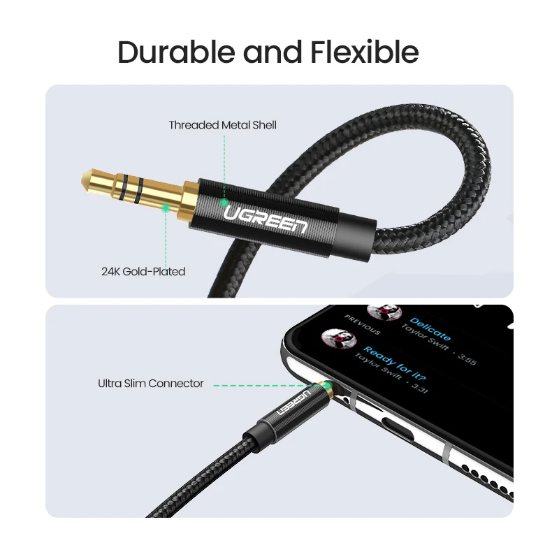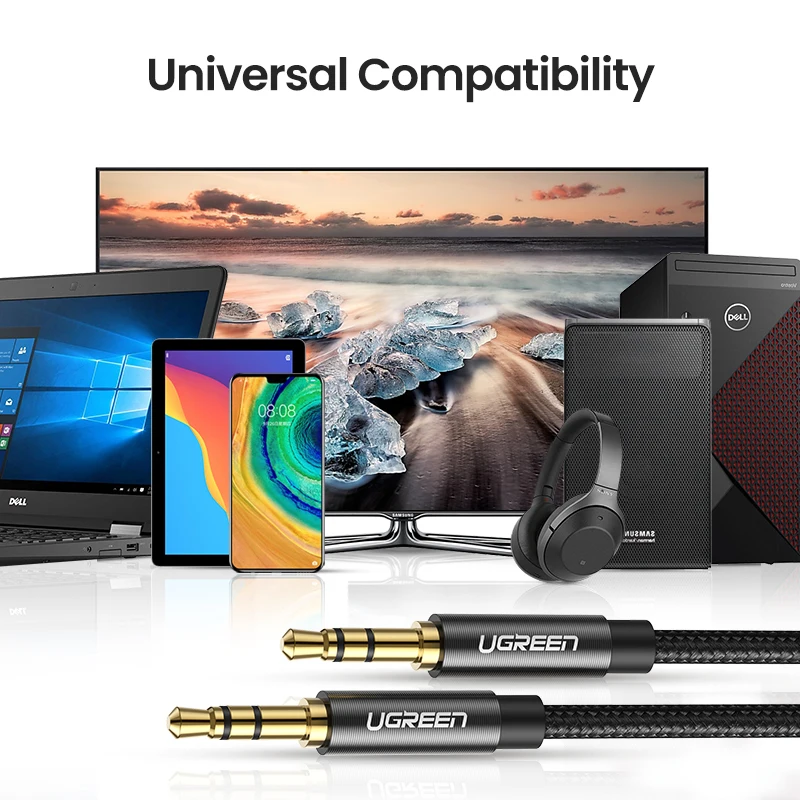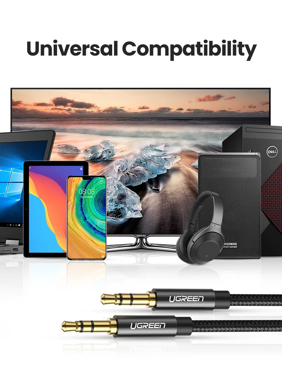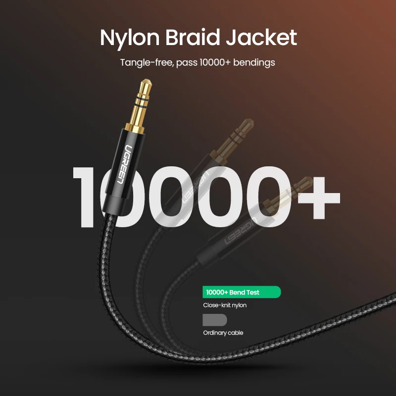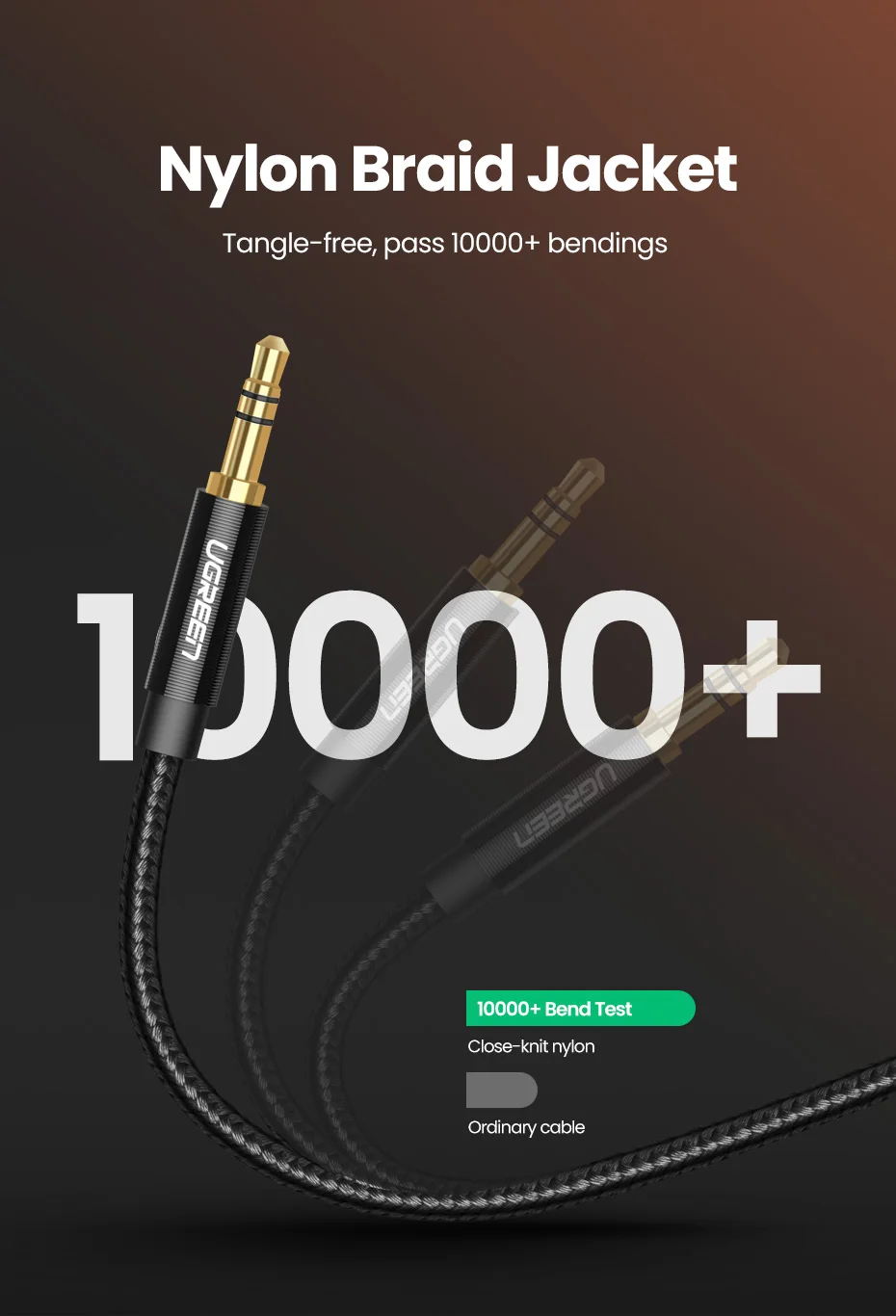 Аудиокабель UGREEN 3,5 мм, стерео вспомогательный кабель AUX, позолоченный плетеный кабель штекер-штекер для автомобиля, дома, стереосистемы, наушников, динамиков