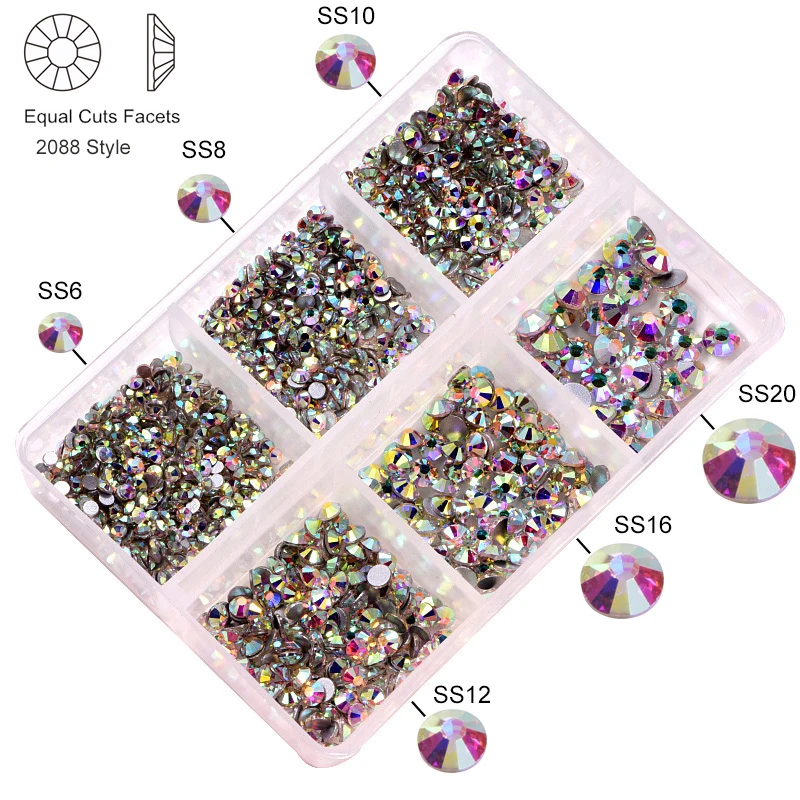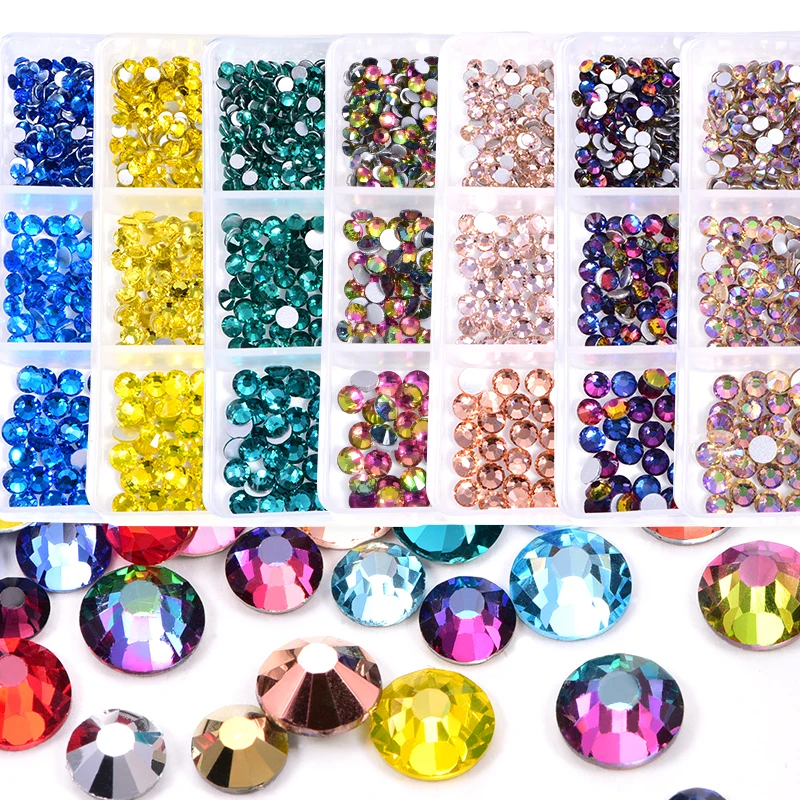 3D Стразы для дизайна ногтей, 1200 шт., смешанные размеры, стеклянные стразы без горячей фиксации, с плоской задней поверхностью, украшения для дизайна ногтей, F0213