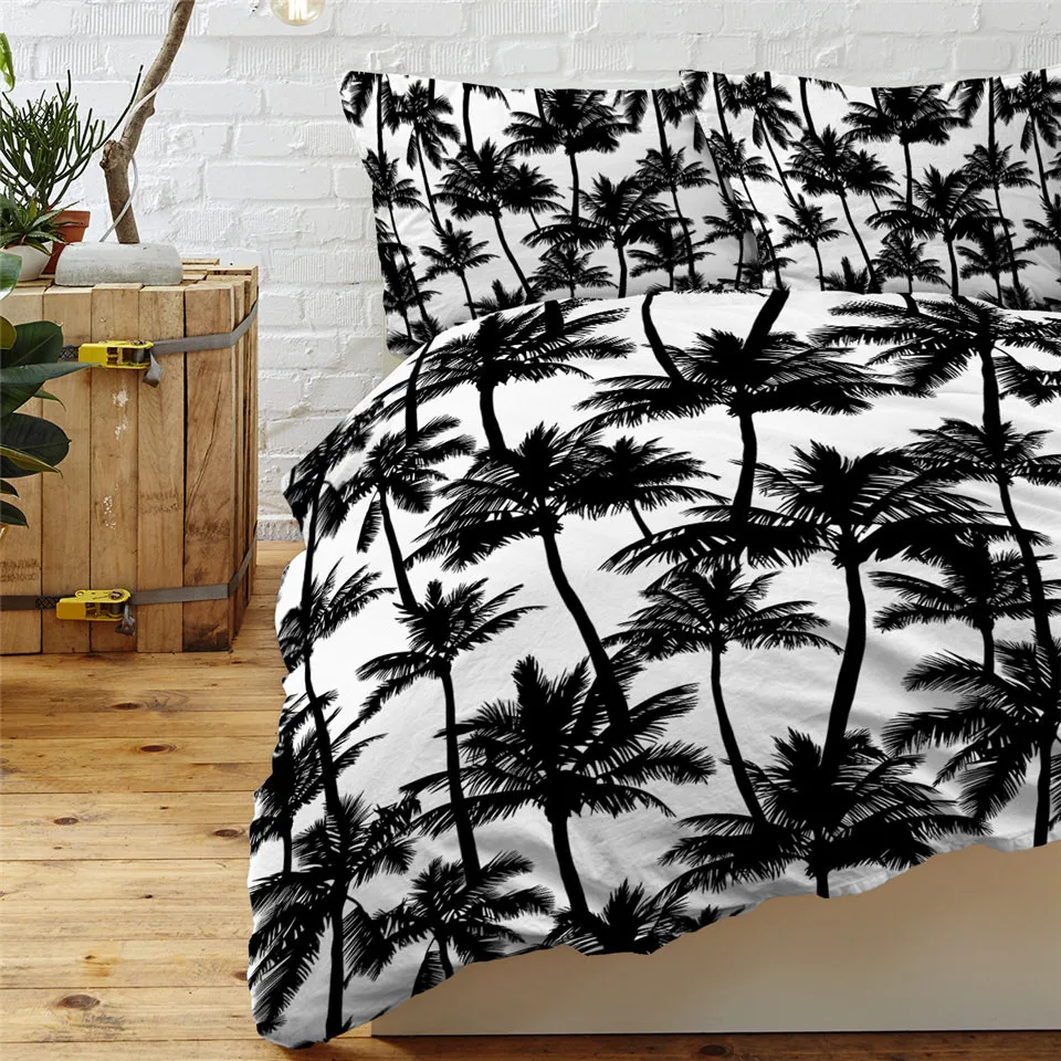 Комплект постельного белья с пальмовыми деревьями, пододеяльником и покрывалом, 3 предмета