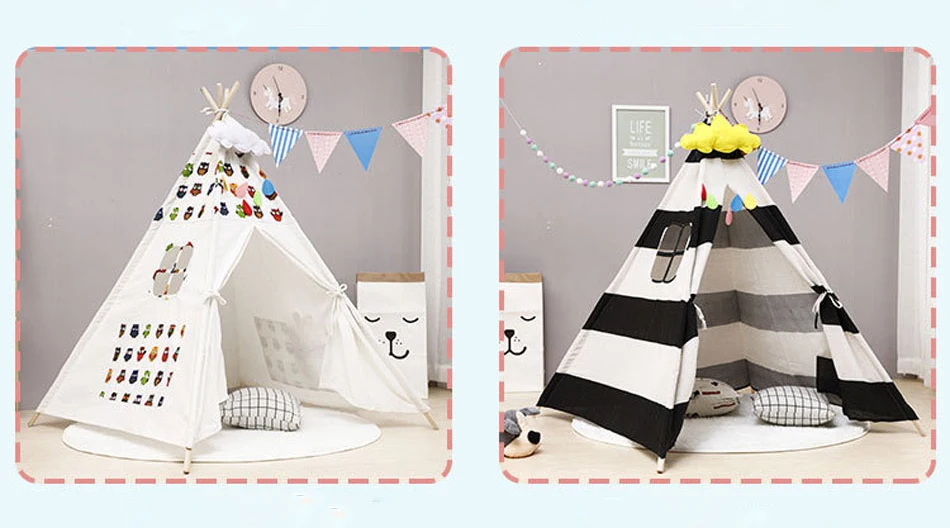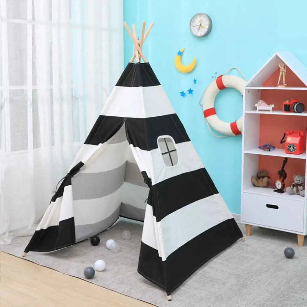 Детская портативная хлопковая палатка Canva Tipi, складная детская палатка в помещении, вигвам, оригинальная треугольная индийская детская палатка, вигвам, маленький игровой домик