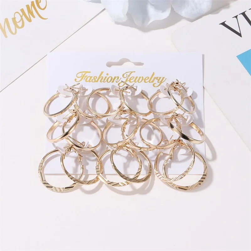 Простой 9 пар/компл. небольшие серьги-кольца из Комплект сережек для женщин пакет цвета: золотистый, серебристый круглые серьги 2020 геометрические серьги с кисточкой Женская обувь