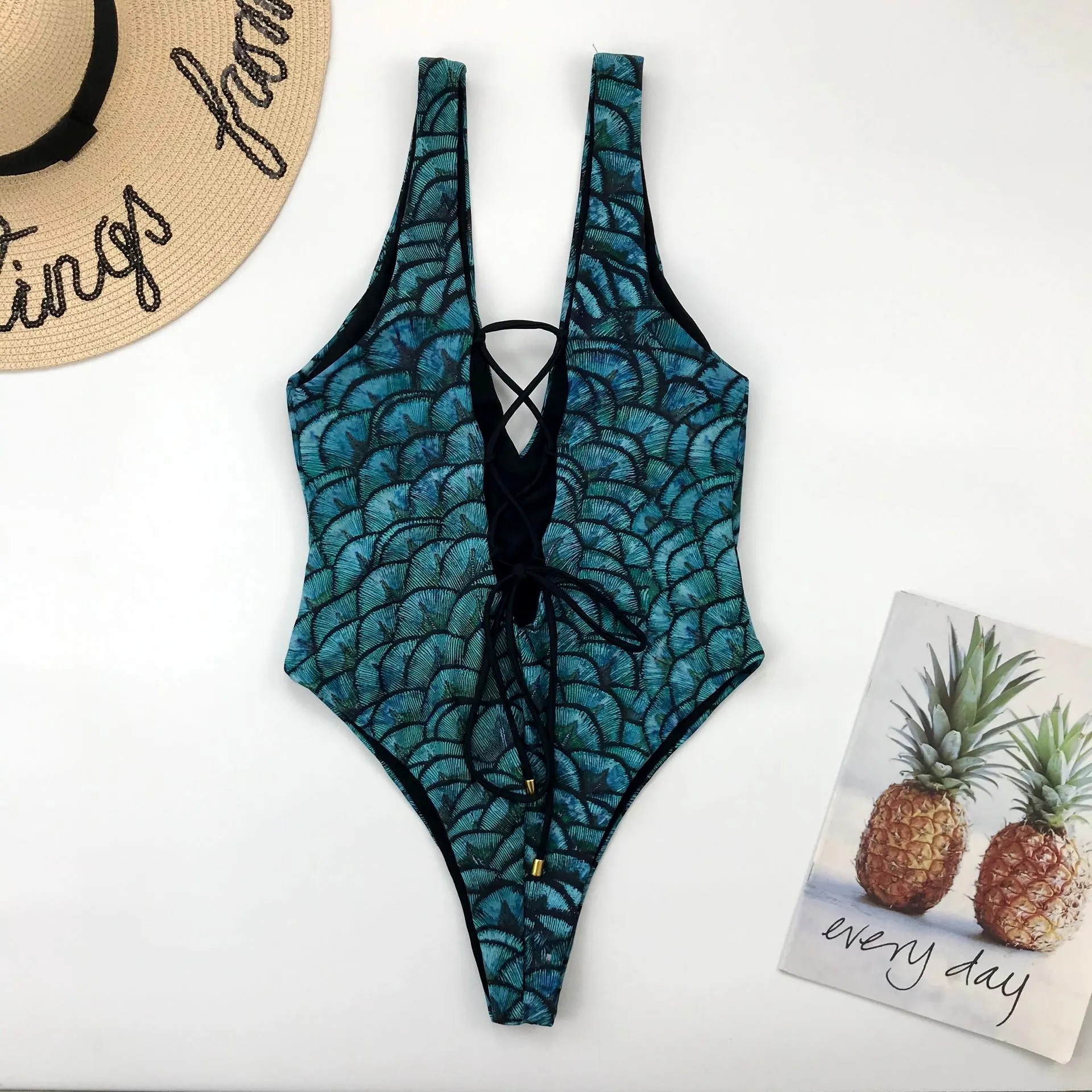 Модное женское пикантное Бандажное слитное бикини с принтом в виде ...