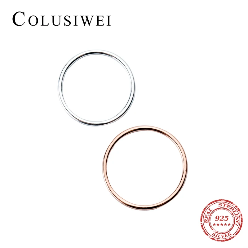 Coluswei 100% реальные 925 стерлингового серебра простой тонкий кольцо на палец для обручального кольца для женщин из розового золота Цвет модный ремешок отлично Корея Стиль ювелирные изделия