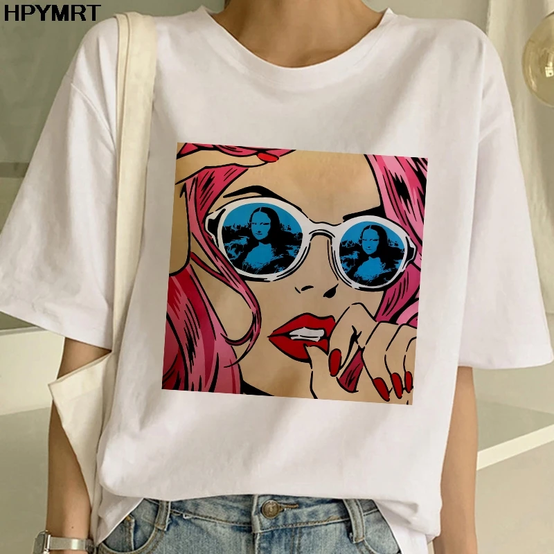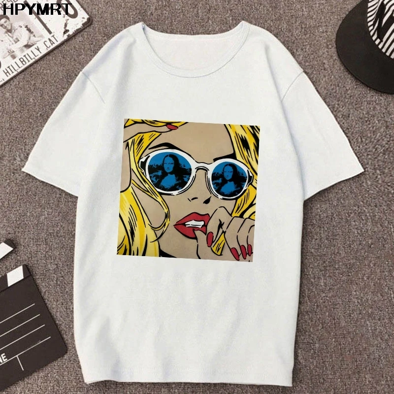 2020 новые летние футболки с принтом Моны Лизы, женские Забавные фу...