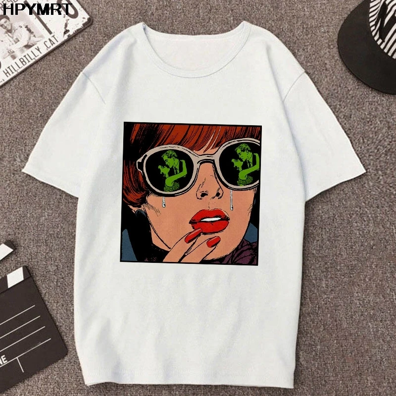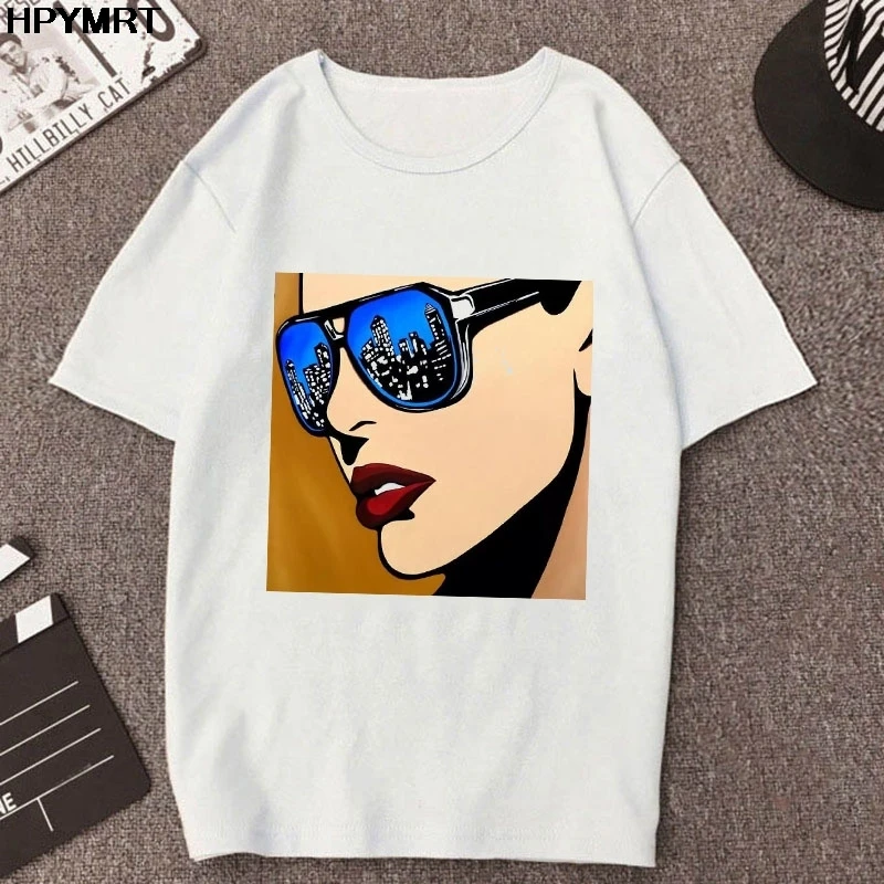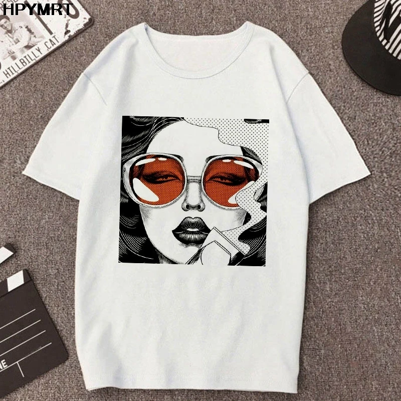 Женская футболка с принтом в виде очков Harajuku, Модная белая футболка, женская одежда, новинка 2020