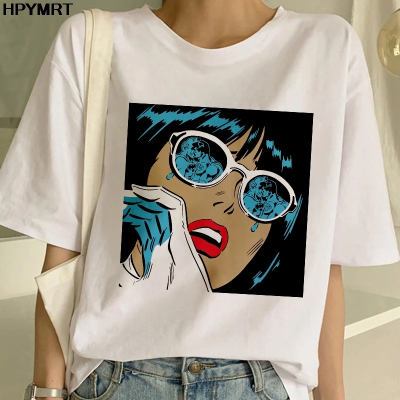 Женские футболки, Веселая футболка с волнами в глаза, Harajuku, топ...