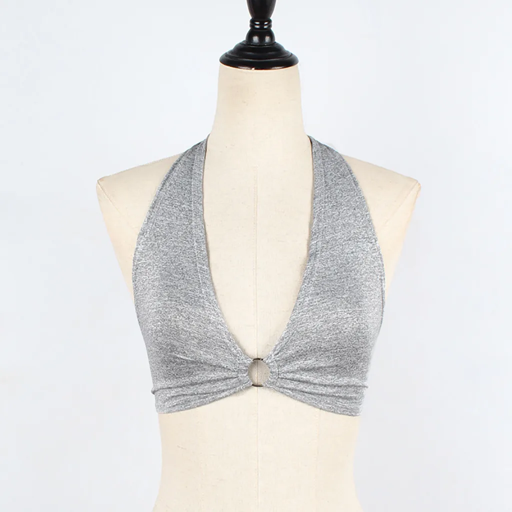 V-образный вырез железное кольцо укороченный Топ для женщин летнее ...