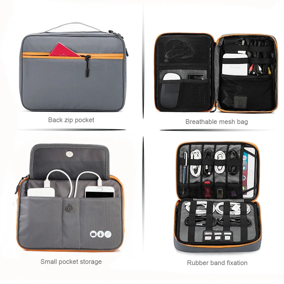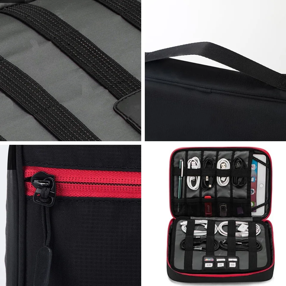 1: он может быть помещен на внешний аккумулятор и мобильный телефон для мгновенной зарядки, а также небольшие цифровые продукты, карты памяти, u-диск и т. д. двойная молния для предотвращения потери. 2: Двухслойное хранилище, большая емкость, аккуратное хранение линий передачи данных и наушников. 6 * специальная сумка для хранения sd-карт, удобная для сбора. Он также может хранить iPad mini, с толстым жемчужным хлопком, водонепроницаемым и противоударным. 3: сетчатый карман делает внутренние предметы не легко упасть, высокие эластичные резинки, можно разместить u-диск, аккумулятор камеры, зарядный разъем, кабели и так далее. 4: все в одном месте: хорошо организовывайте вещи! Дорожная сумка для электроники имеет 21 эластичную петлю, 5 мини сетчатых карманов, 3 сетчатых кармана, передний карман (внешний аккумулятор и мобильный телефон),1 карман для планшета, 1 задний карман. Сетчатые и эластичные карманы для карт sd / tf, кабелей, зарядных устройств, жесткого диска, мобильного телефона, внешнего аккумулятора и т. д. 5: 260x200x20 мм, этот чехол-органайзер поможет Вам сортировать и хранить ваши товары из-за различных отсеков и карманов. Отлично подходит для того, чтобы увидеть все ваши товары и сохранить их в порядке. Вы можете взять его в путешествие. Или в качестве лучшего подарка. 6: Отличная защита: Хорошо Мягкий органайзер для электроники обеспечивает отличную защиту ваших электронных аксессуаров. И прочная и водонепроницаемая нейлоновая поверхность защищает ваши электронные аксессуары от брызг, дождя, пыли или царапин.