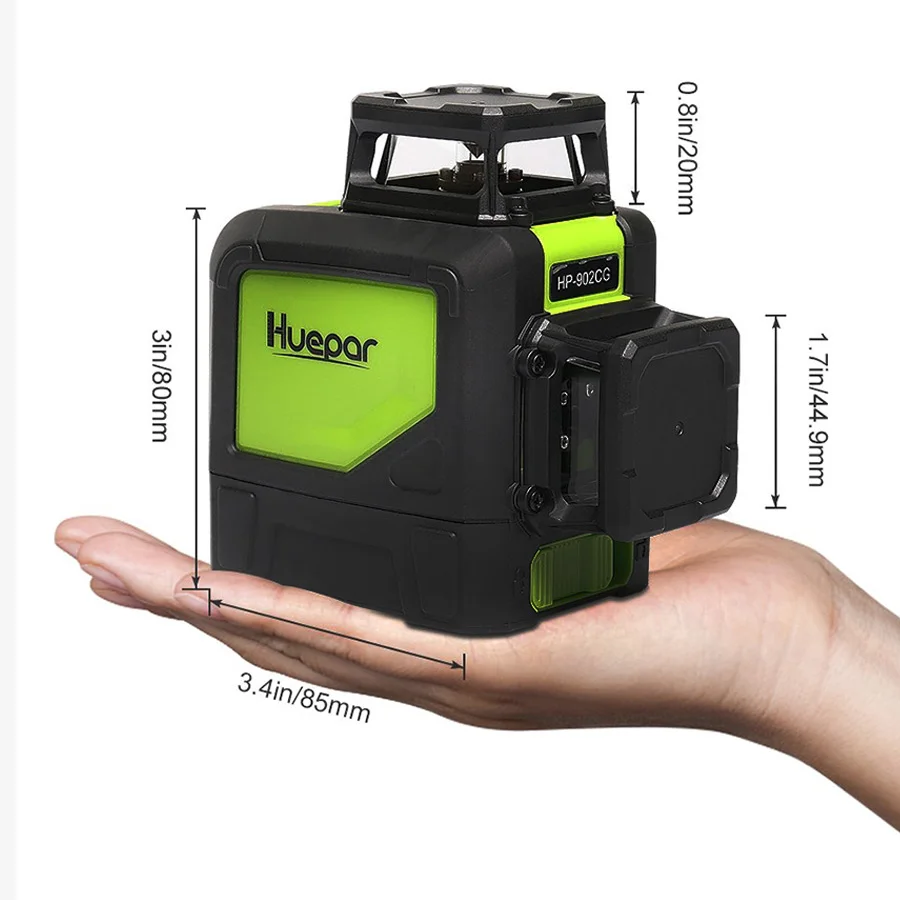 Самонивелирующийся лазерный 3D уровень Huepar 902CG 360, зеленый луч, мощный лазерный луч, 3D 5812 линий, лазерный нивелир