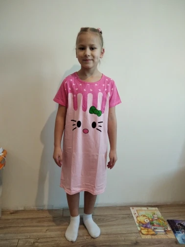 Хорошая хлопковая ночная рубашка. На рост 122 с запасом получилась, но уже носим