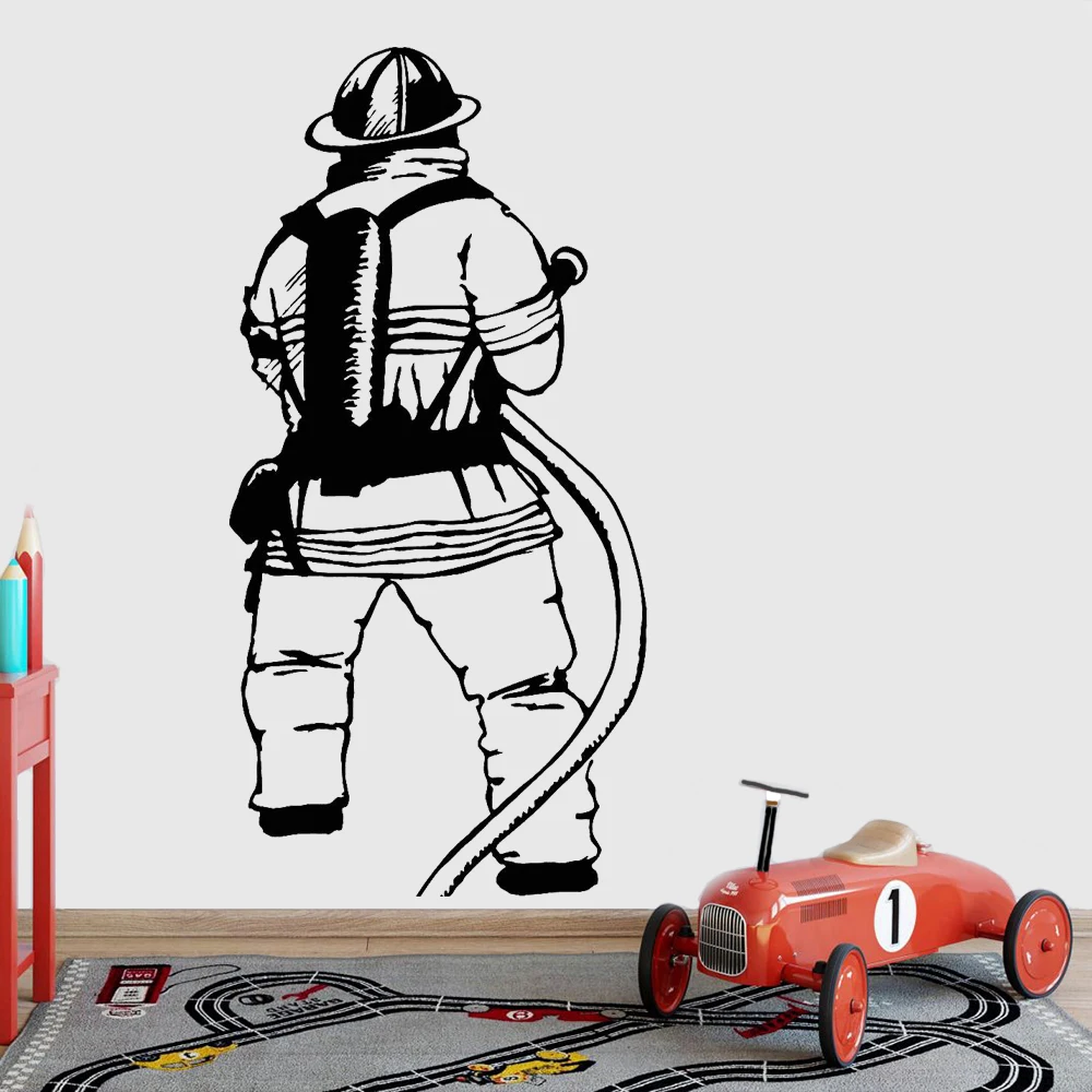 Наклейка на стену пожарный грузовик, мультяшный пожарный гидрант, а...