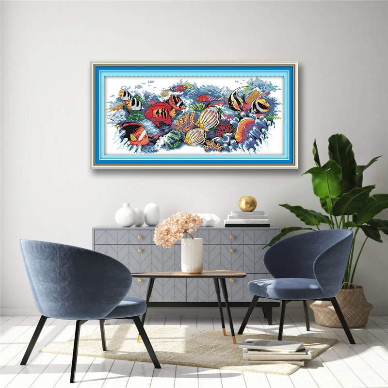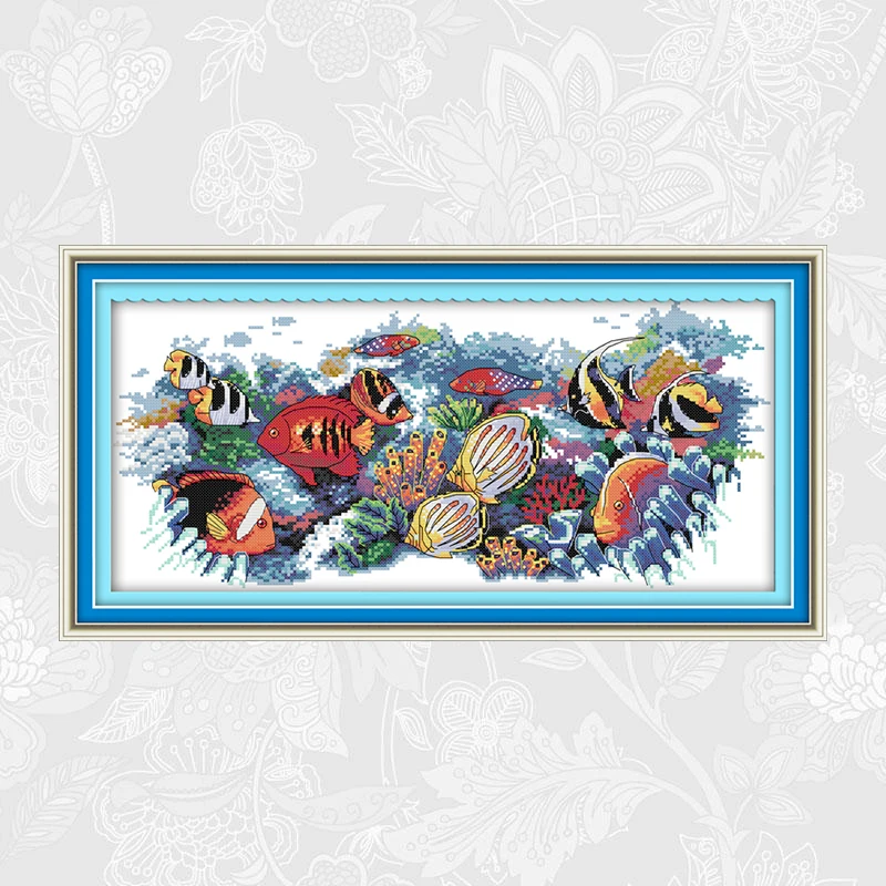 Joy Sunday Набор для вышивки крестиком с принтом тропической рыбы на холсте Набор для вышивки сделай сам подарок для начинающих