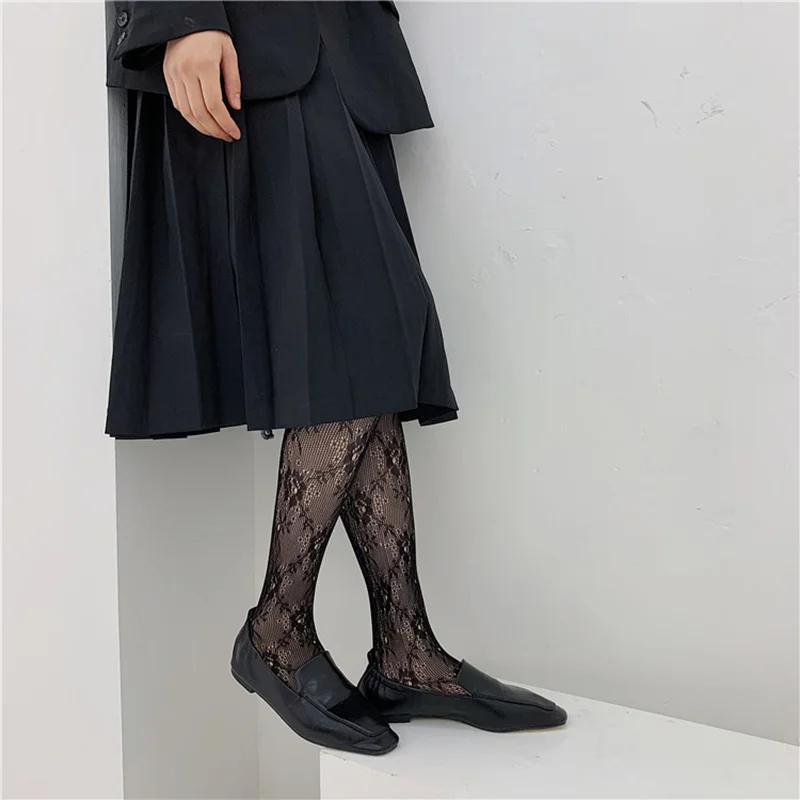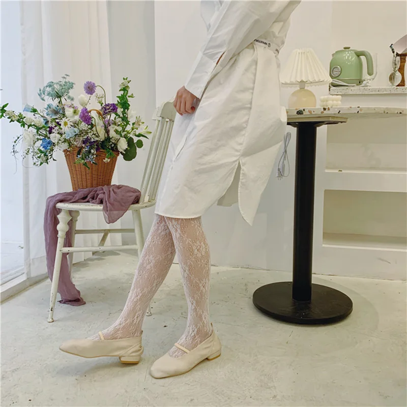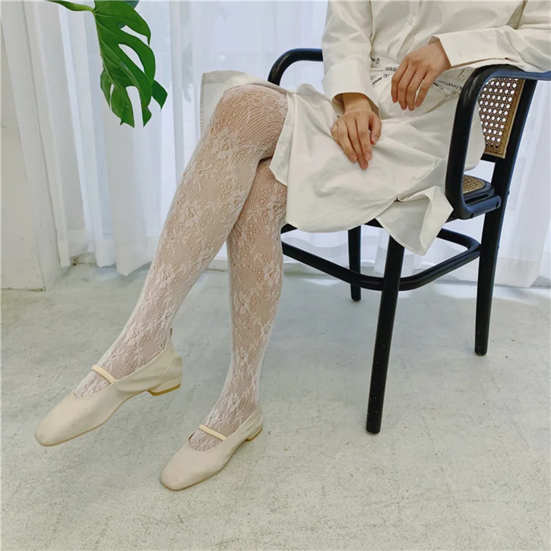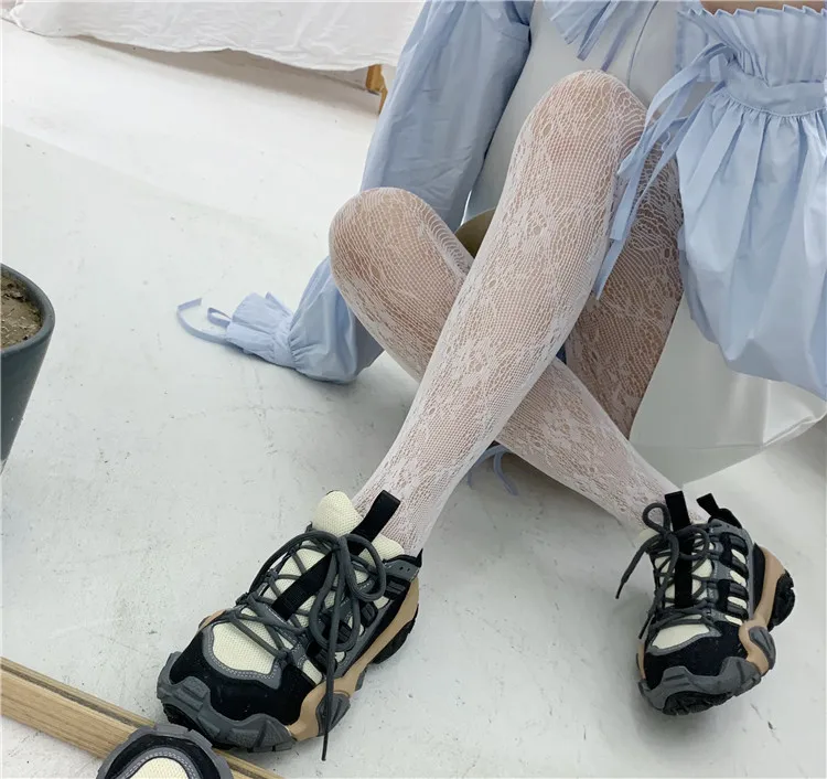 Кружевные чулки в стиле "Лолита", тонкие нейлоновые чулки, Женские Прозрачные Высокие Колготки, платье