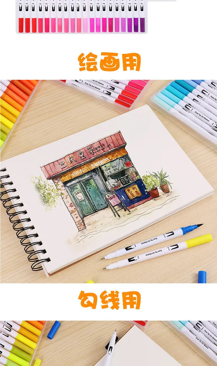 Двойная головка Акварельная Кисть ручка Мягкая головка скетч Маркер 12 24 36 каллиграфия красками мультяшный лайнер красивая ручка Набор для рисования