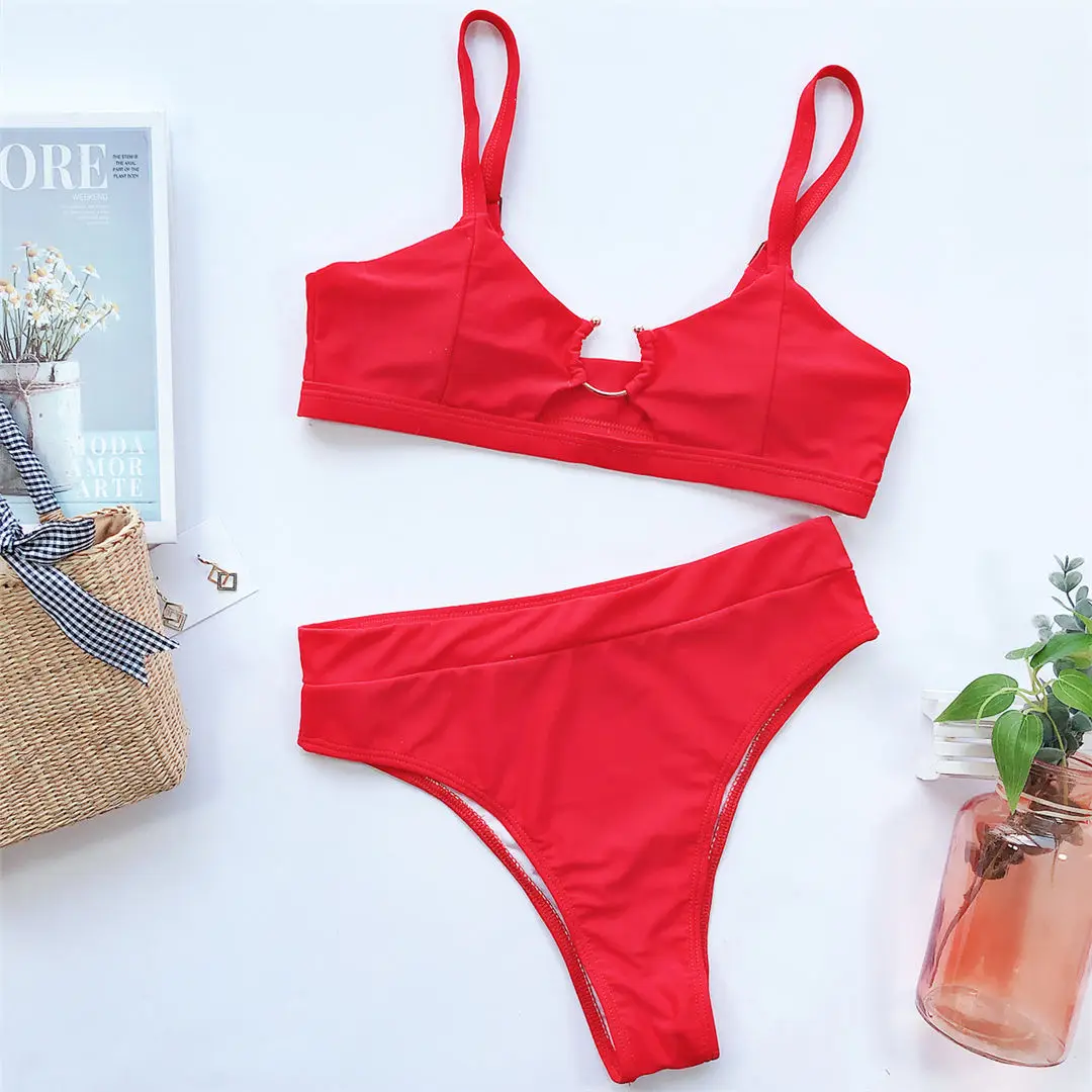 Новый сексуальный красный купальник со средней талией, Женский комп...