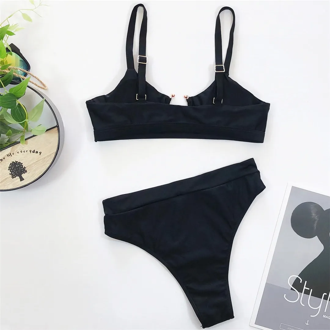 Женский комплект бикини, черный купальник из двух частей с высокой ...