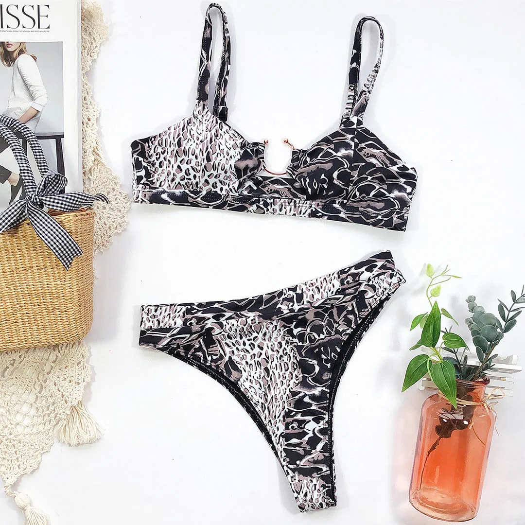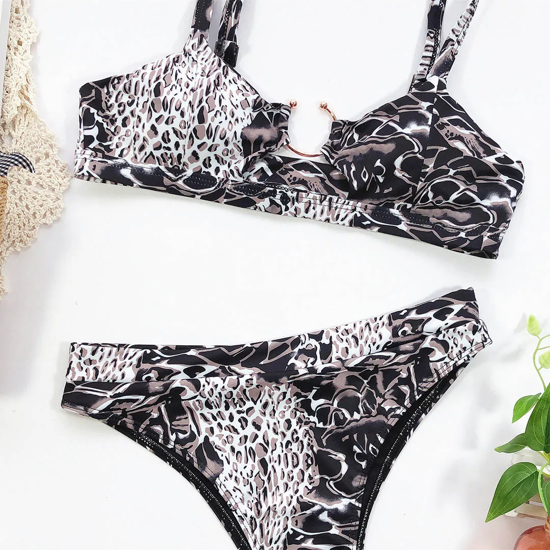 Сексуальное черное леопардовое бикини 2021 женский купальный костюм...