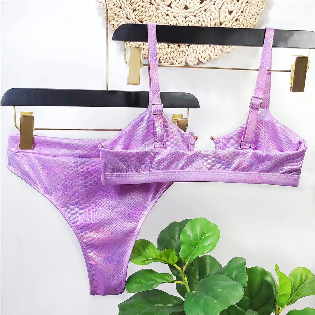 S - XL Блестящий сверкающий женский купальный костюм бикини с высок...