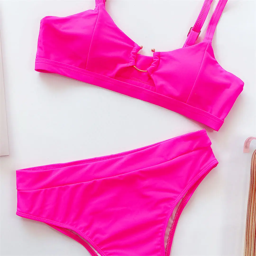 Сексуальное неоновое розовое Бразильское бикини 2021 женский купаль...