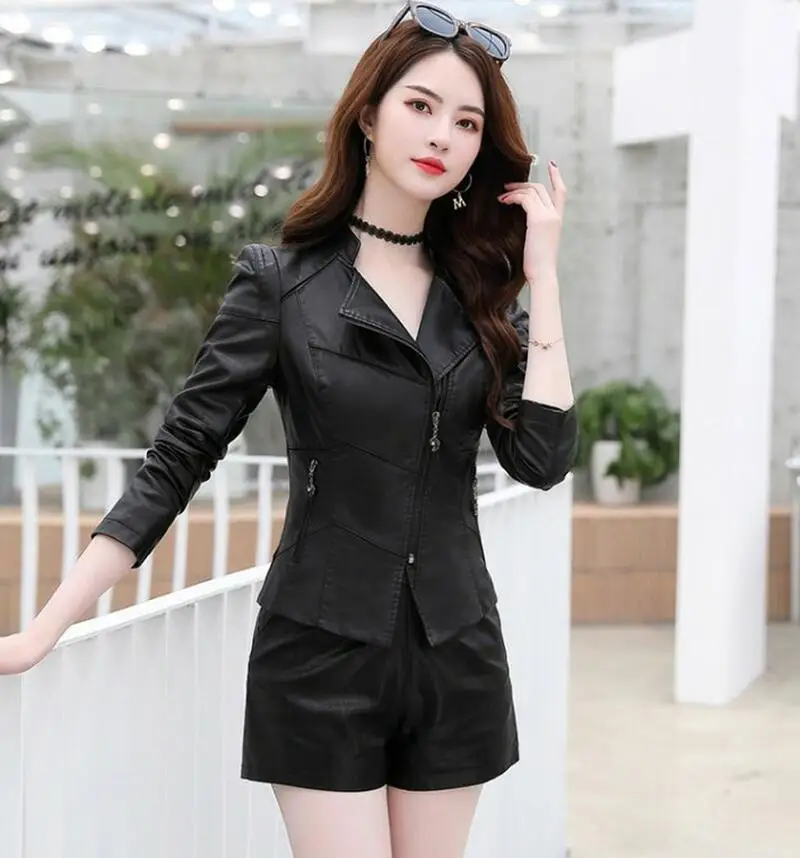 Куртка женская из размера плюс искусственной кожи, короткая приталенная, мотоциклетная куртка, пальто, новинка 2020