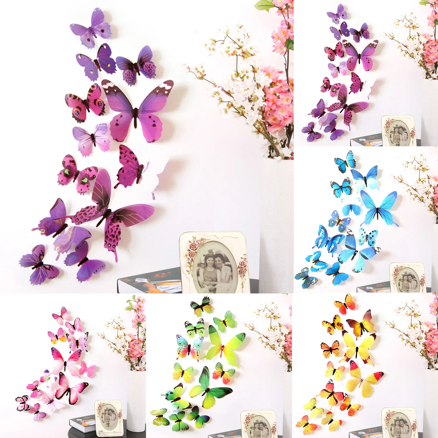 Besegad 12 шт 3D ПВХ бабочки DIY стикер на стену Съемная бабочка на холодильник вечерние украшения для дома Декор для комнаты