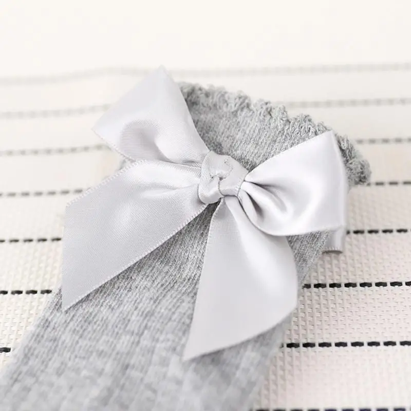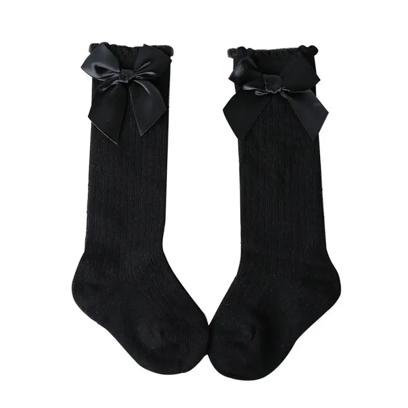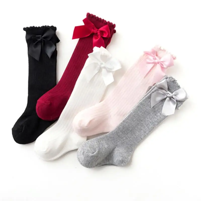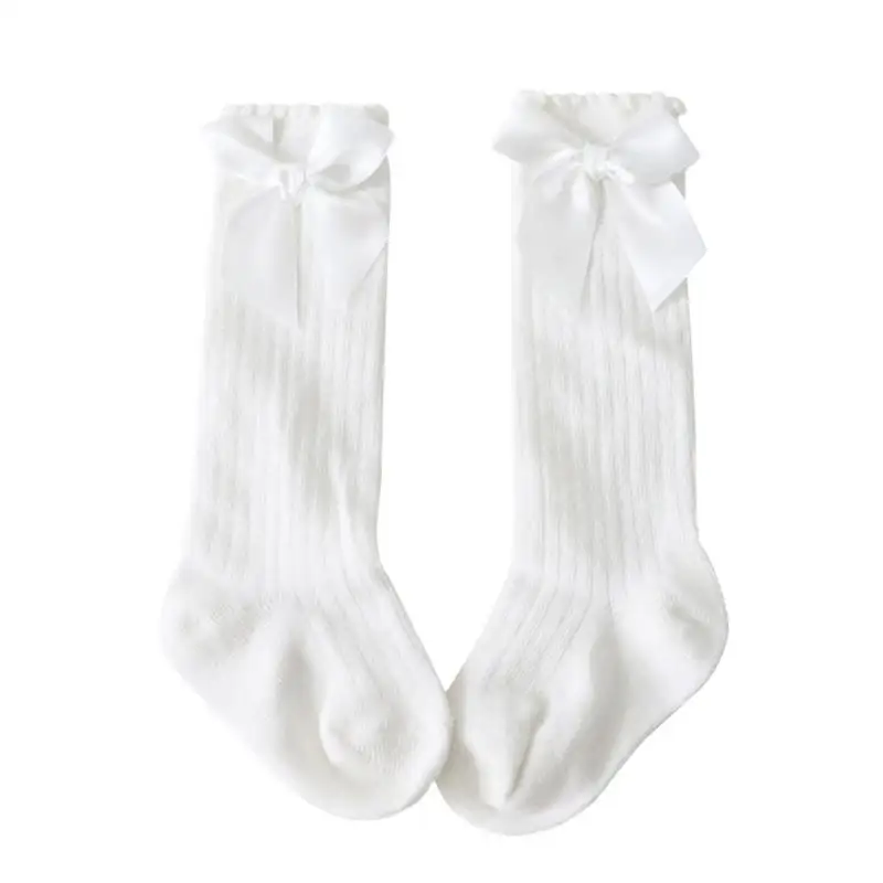 Весенние однотонные хлопковые чулки для маленьких девочек, мягкие и удобные детские чулки в Вертикальную Полоску с бантом, Прямая поставка