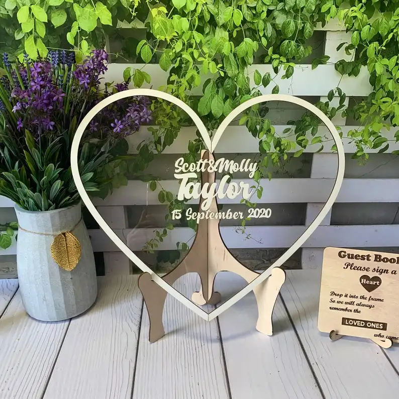 Деревянные таблички с сердцем на заказ, лазерная резка имена гостей...