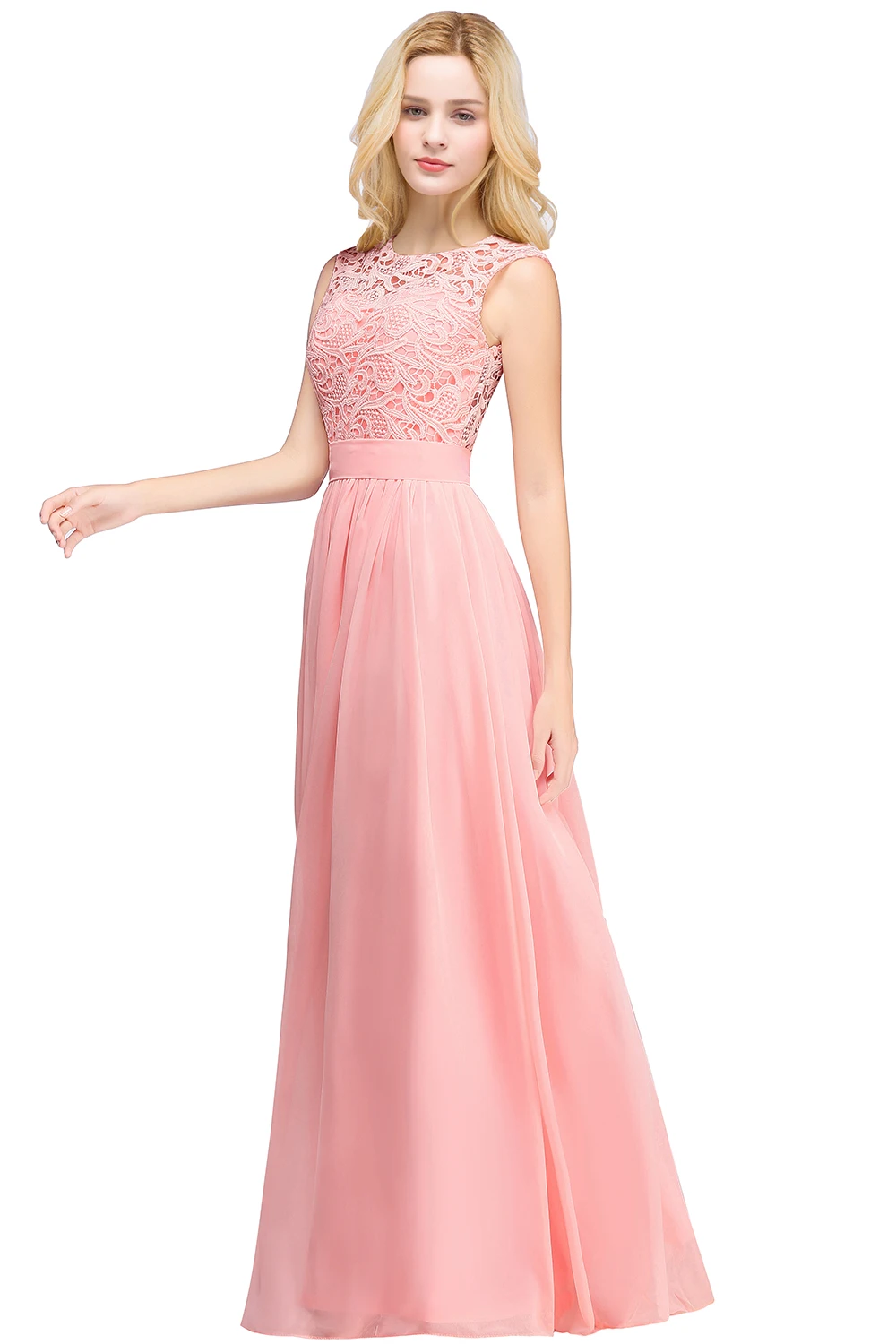Румяно-розовые шифоновые кружевные Длинные Платья для подружек невесты, 2020, свадебное платье для гостей, подружки невесты без рукавов, vestido madrinha