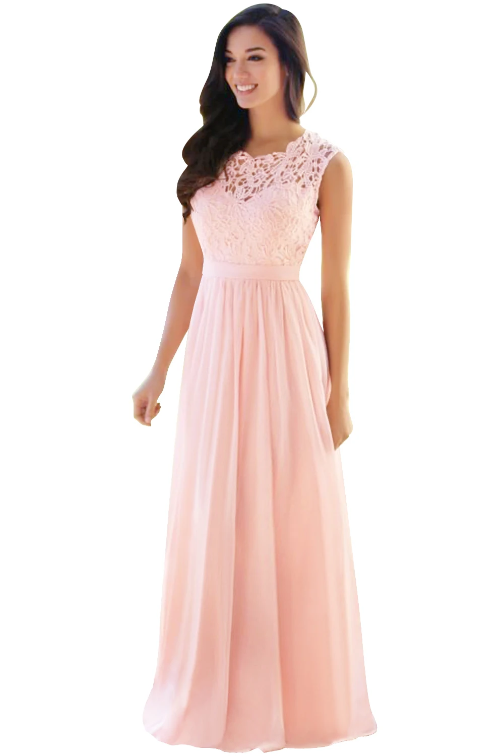 Розовые шифоновые длинные платья для подружек невесты, платье для г...